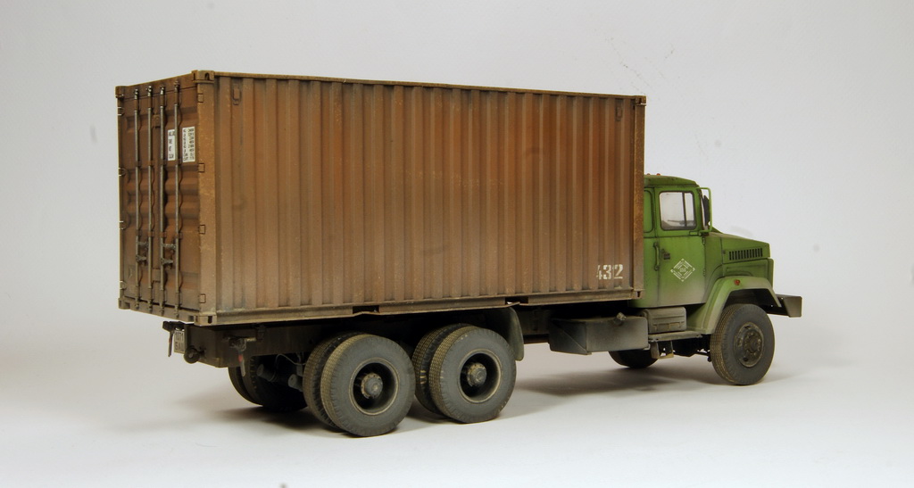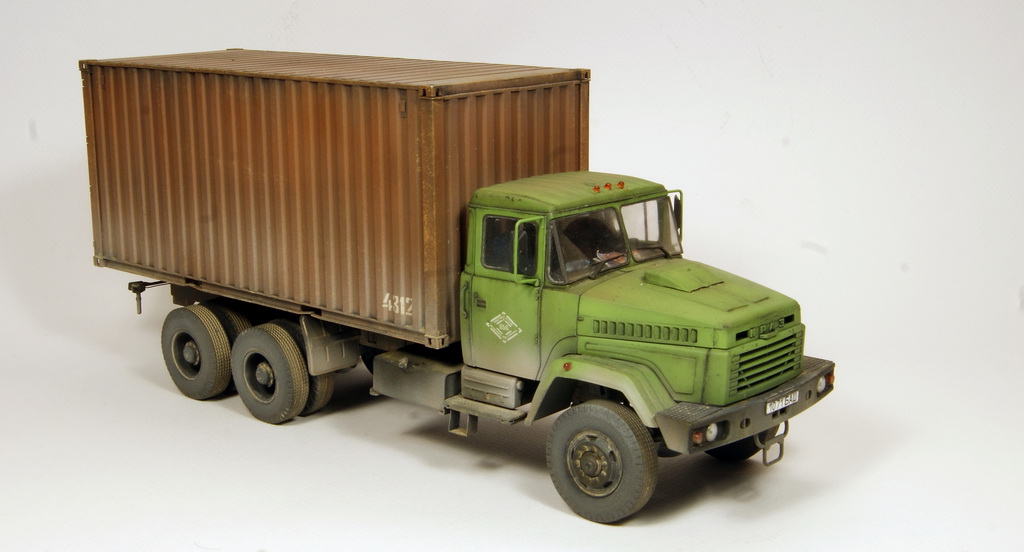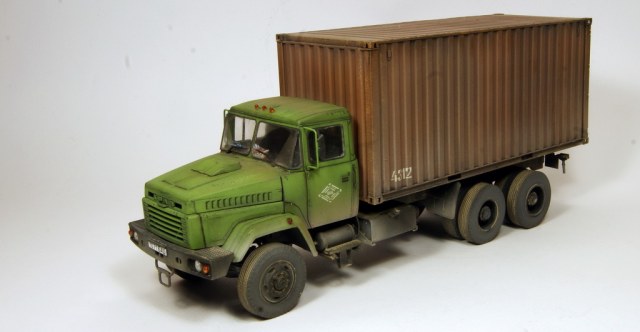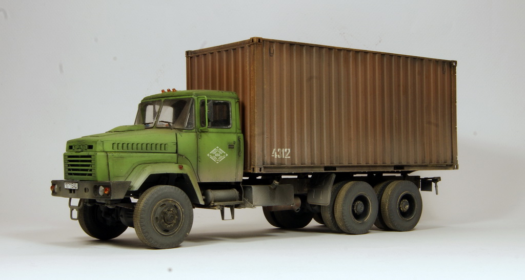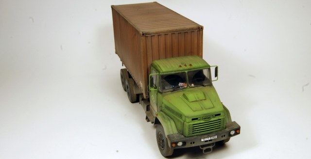 Вариация на тему КрАЗов. Идея с контейнером пришла буквально с улицы, подобных машин не мало, я не подразумеваю каких то определенных соответствий и копийности, а говорю лишь о концепции. Такомовский КрАЗ вполне хорош как модель, за исключение пожалуй колес. Процесс сборки не сложен, но методика сборки кабины на раму по частям несколько напрягает. В итоге в формировании окончательного вида машины кроме контейнера от Италери были добавлены колеса от Panzershop. Не совсем то что нужно но возможность не исключение.