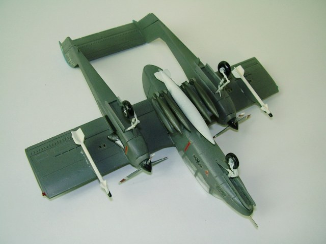 Красилась модель обычной нитроэмалью, даже не модельной и не совсем по цветовой схеме. Оливковой нитрокраски не было, поэтому бомбы тёмно-зелёные.