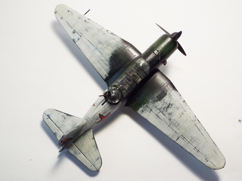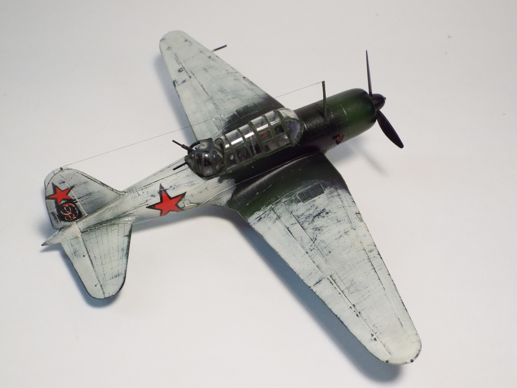 Матвей, очень сомнительно что лопасти у Су-2 черные. Скорее всего тусклый алюминий. Может быт с тыльной стороны окрашены черным на две трети. А еще весьма часто на Су-2 были атипичные звезды на верхних плоскостях.