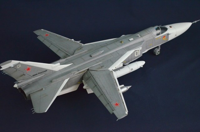 Следил за стройкой - очень удачная получилась модель, а что всегда радует - очень аккуратно. Я бы конечно еще сверху ее немного добавил везеринга сверху, обычну су-24 очень грязные почему-то ) но как понимаю тут выбирает закзчик.