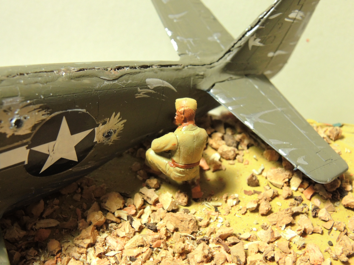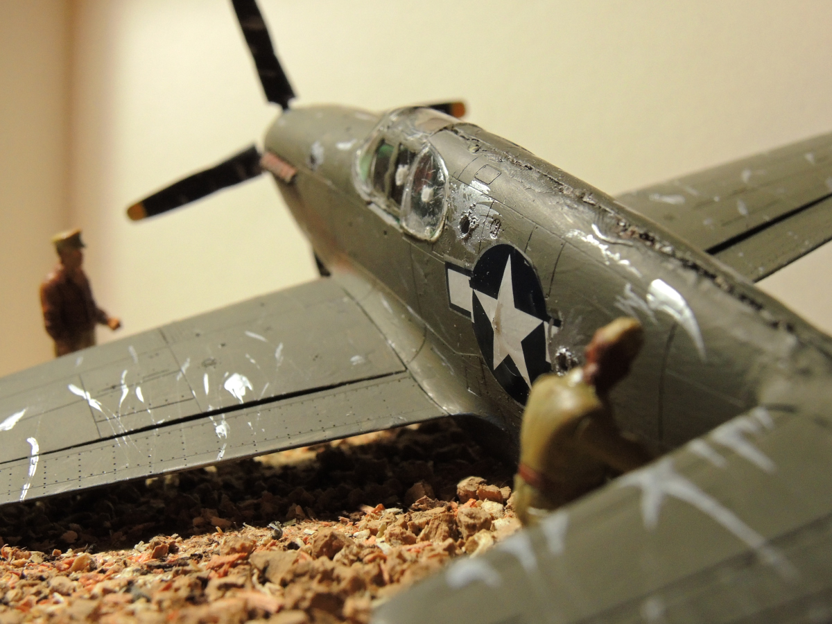 Изначально я собирался собрать просто модель "для полки". Но потом я увидел ICM-овский P-51b Mustang с наземным персоналом и, сразу это превратилось в диораму под названием "Перед вылетом" но, когда я приклеил левую стойку шасси, "лапка подломилась" и, я оказался в ступоре. День рождения скоро, и время поджимает. Hо, к счастью когда я играл в компьютерную игру "War thunder" мне пришлось там совершить вынужденную посадку, что и подкинуло мне идею окончательного варианта подарка для дяди.