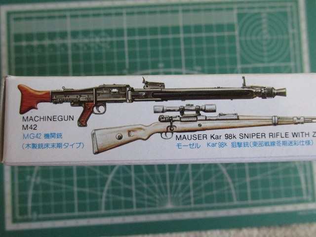 Данный набор оставил противоречивые чувства. Из плюсов: Неплохой ассортимент и по максимум использования пространства. Явный минус, который бросается в глаза, это размеры, они явно меньше, чем должны быть. Особенно это заметно на MP-40 и карабинах Маузер 98К. Как к этому отнестись, каждый решит сам. Лично для себя решил, что это отдельные модели, выпущенные ограниченной партией.