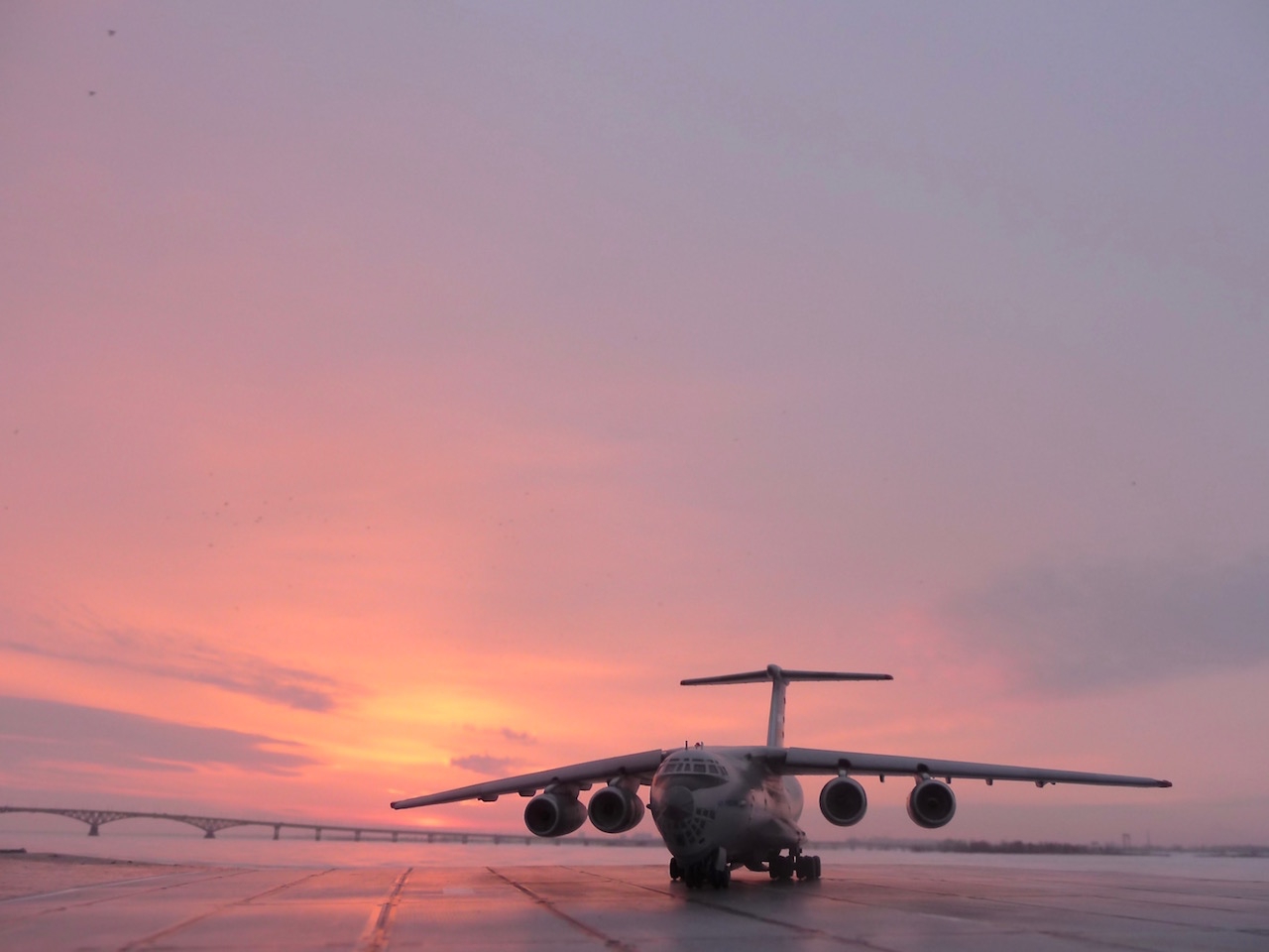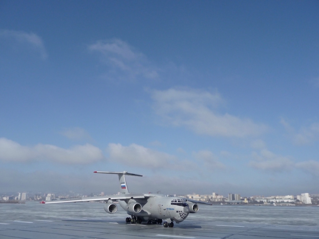 Отличное исполнение!Я бы ещё обязательно сточил колёса,самоль то гигант.Понравились фото на фоне Саратовского моста!