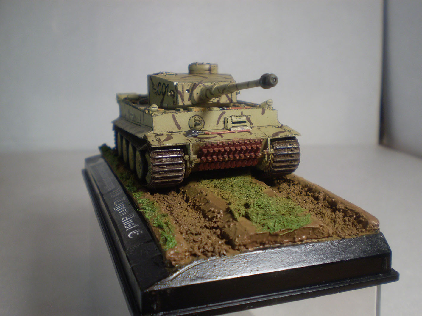 Ну и пара слов про подставку - по замыслу грунт - высохшая грязь (по-этому танк особо грязью не уделывал). И, в принципе, при дневном освещении так оно и выглядит. Но на фотографиях появился блеск, так что кое-где может показаться, что грязь свежая.