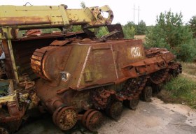 Заброшенная самоходная установка ИСУ-152К применявшейся в ликвидации последствий аварии на Чернобыльской АЭС.
