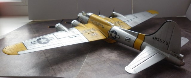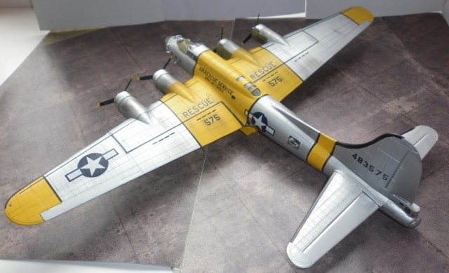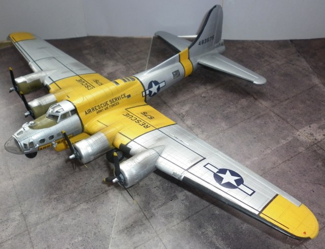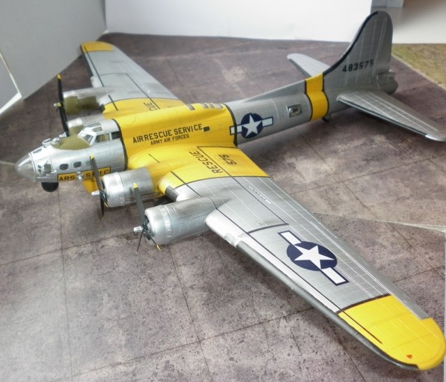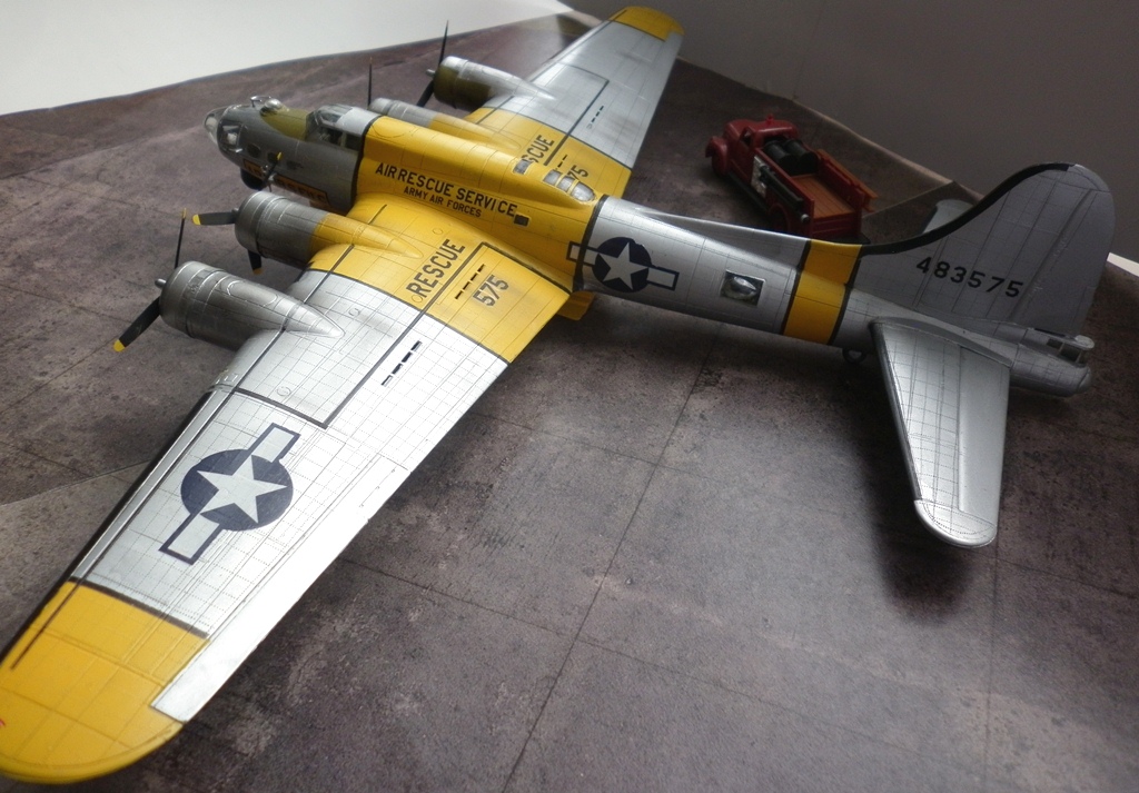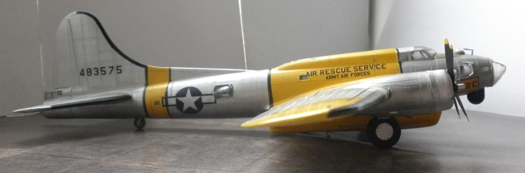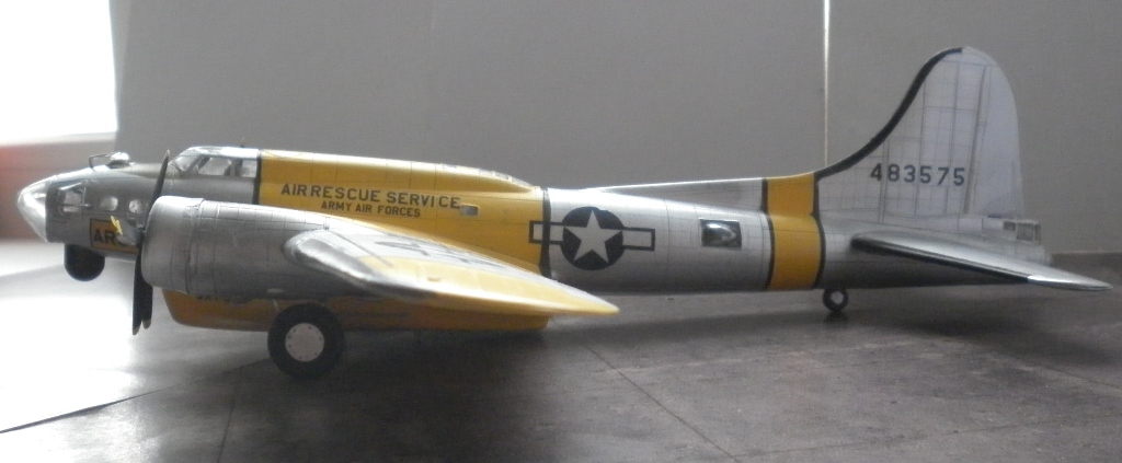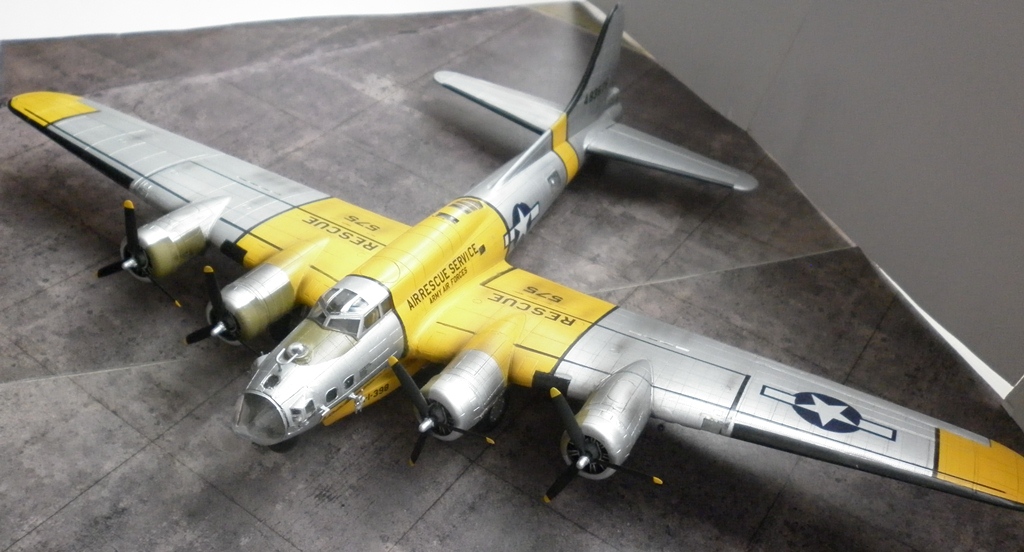 Модель спасательного варианта "Летающей крепости" на "каропке" , вроде, ещё не встречалась. Модель собрана "из коробки". Доработок- минимум, только прорезал вход и выход маслорадиаторов, да немного проклепал. Окраска- по инструкции- поиски в сети показали что с такой окраской были,в основном, машины уже с послевоенными знаками, но я решил доверить корейцам. Сложностей, особых, не было - окраска BOSNY, Tamia. Единственная сложность - декаль. Она не фанерная. Она каменная. Пробные части даже будучи покрыты лаком ломались как айсберги. Но благодаря польской химии Na Kalki,Pod Kalki, вроде бы , удалось декаль победить.