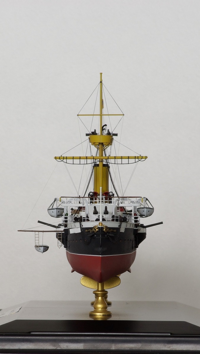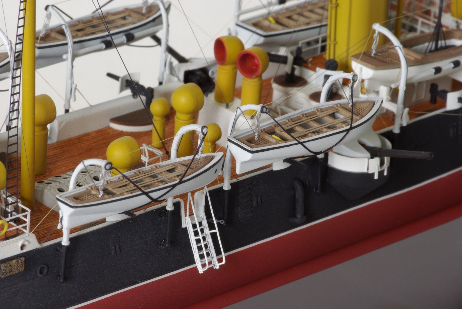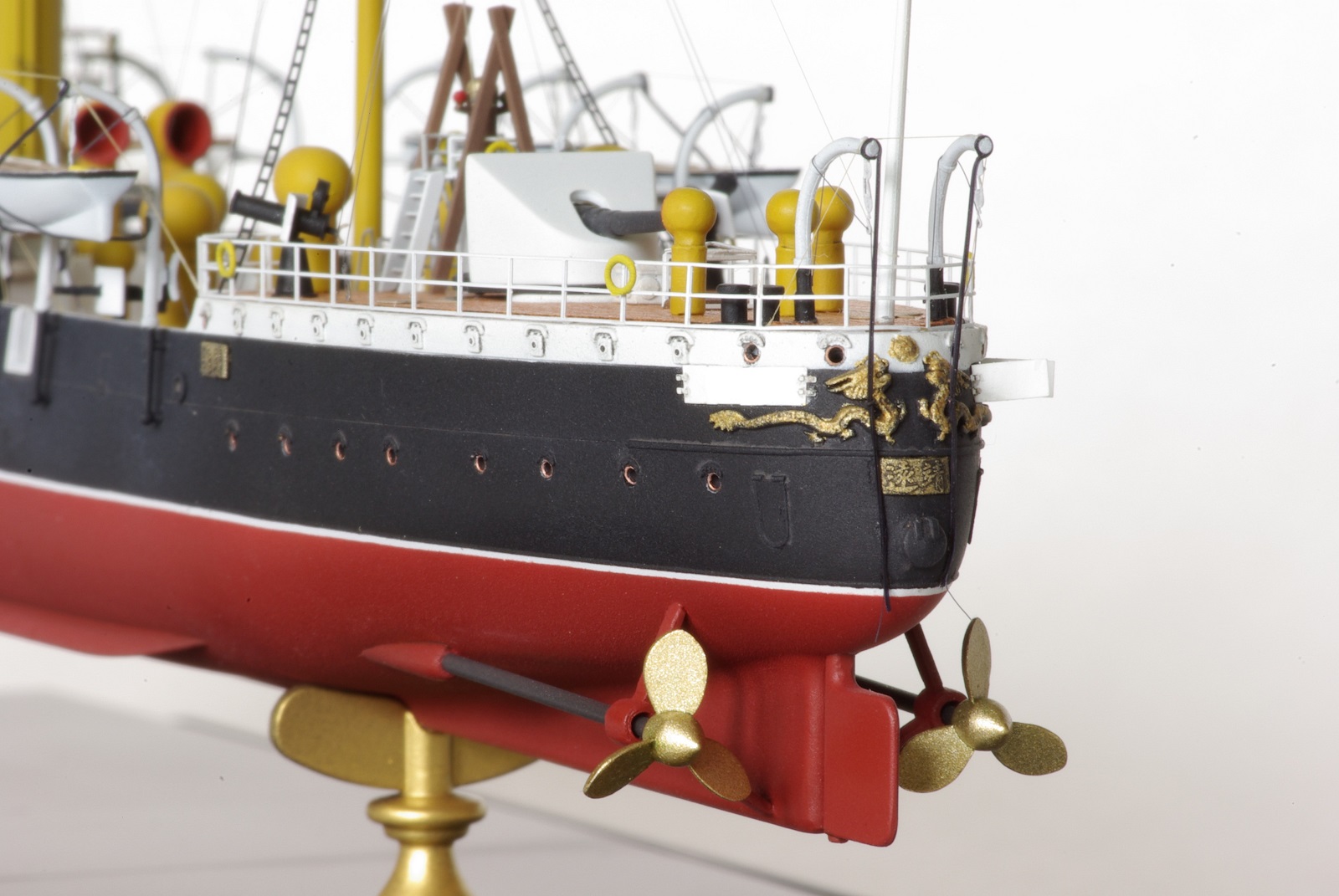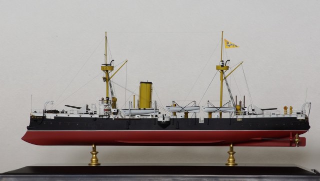 Выбор периода на который собирался строить корабль, был не сложный, так как считаю что самый выигрышный вид он имеет именно в классической «викторианской» окраске, по этому строил его состоянием на 1888 год, хоть он ходил в такой окраске до самой войны, но выбор года уперся в декаль флага треугольной формы из набора, так как в октябре 88 он был заменен на более распространенный флаг прямоугольной формы, а его в наборе нет.