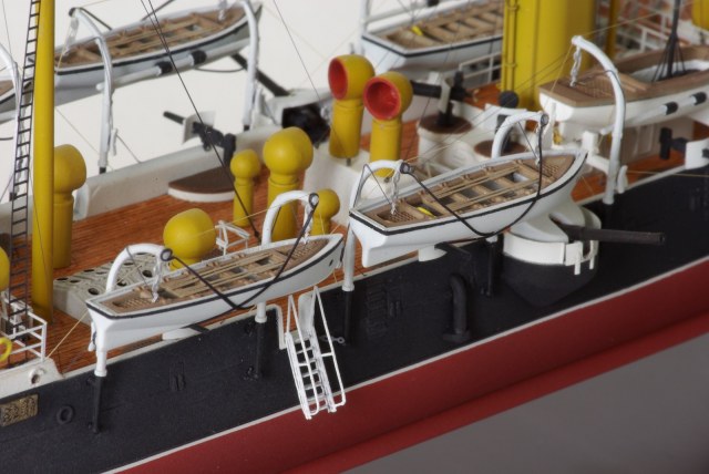 Вот что касается кормовой шлюпки тут уж я не могу что-то объяснить, я даже не знал что это не обычно, я просто взял и попробовал скопировать то что увидел на фото, особо не вдумываясь какой длины найтовые обычно и куда их убирают, как то даже не думал об этом, а просто скопировал увиденное на фото! Возможно не самым удачным способом, но уж как получилось.