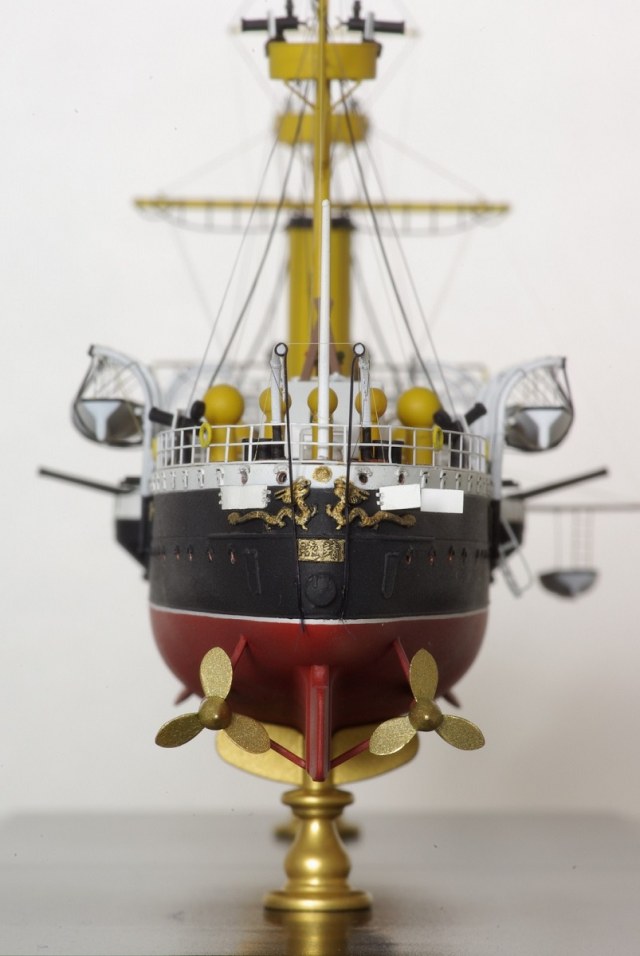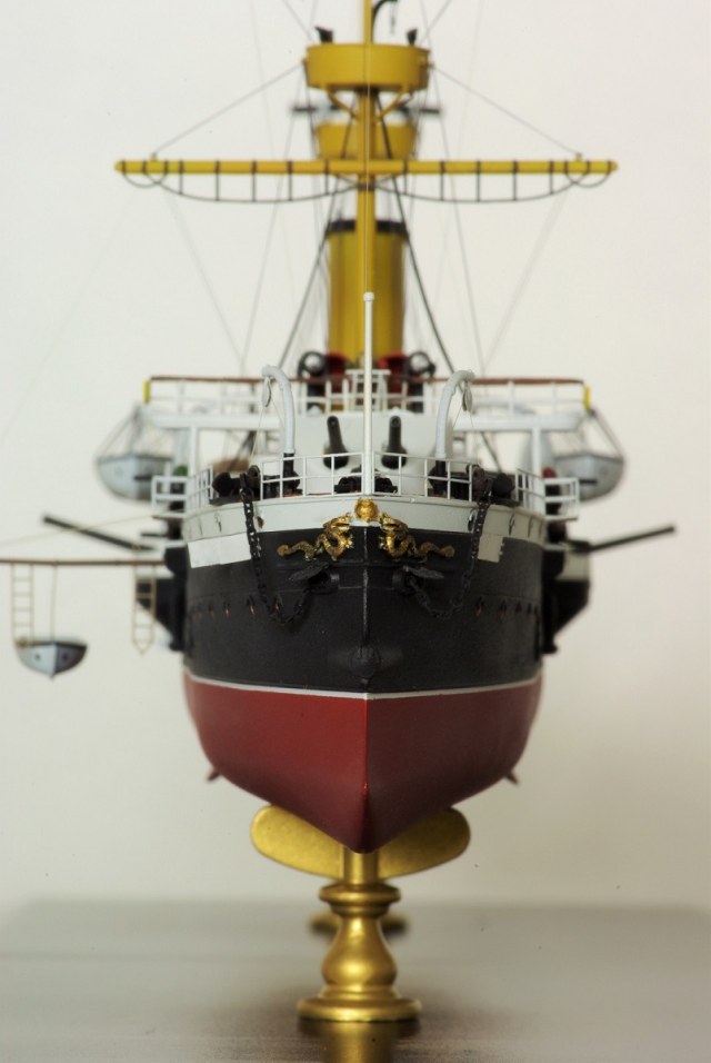 Если честно, думаю как у любого автора, по окончанию работы, у меня был уже ряд претензий к собственной работе и моментов которые я если бы строил заново эту модель, непременно бы делал по другому! Многое вышло не так как задумывалось или хотелось! Где то одолевала лень, где то кривые руки. В определенный момент крейсер вообще рисковал уйти на вечный покой обратно в коробку и на самую высокую, пыльную полку. Но благодаря пинку моей дочурки, которой он очень нравился (дракончики всякие, цветной, красивы, особенно по сравнению с серыми невзрачными папиными корабликами :-)) ) этот крейсер все таки сошел со "стапели" чему я несказанно рад ))) Не уверен что в ближайшем будущем вернусь к броненосцам, хоть и есть в загашнике еще что собрать из этой эпохи, но полезный опыт однозначно получен.
