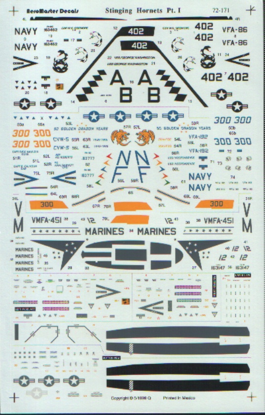 Шикарная декаль на несколько вариантов Хорнета из разных эскадрилий, как флотских, так и морпеховских.