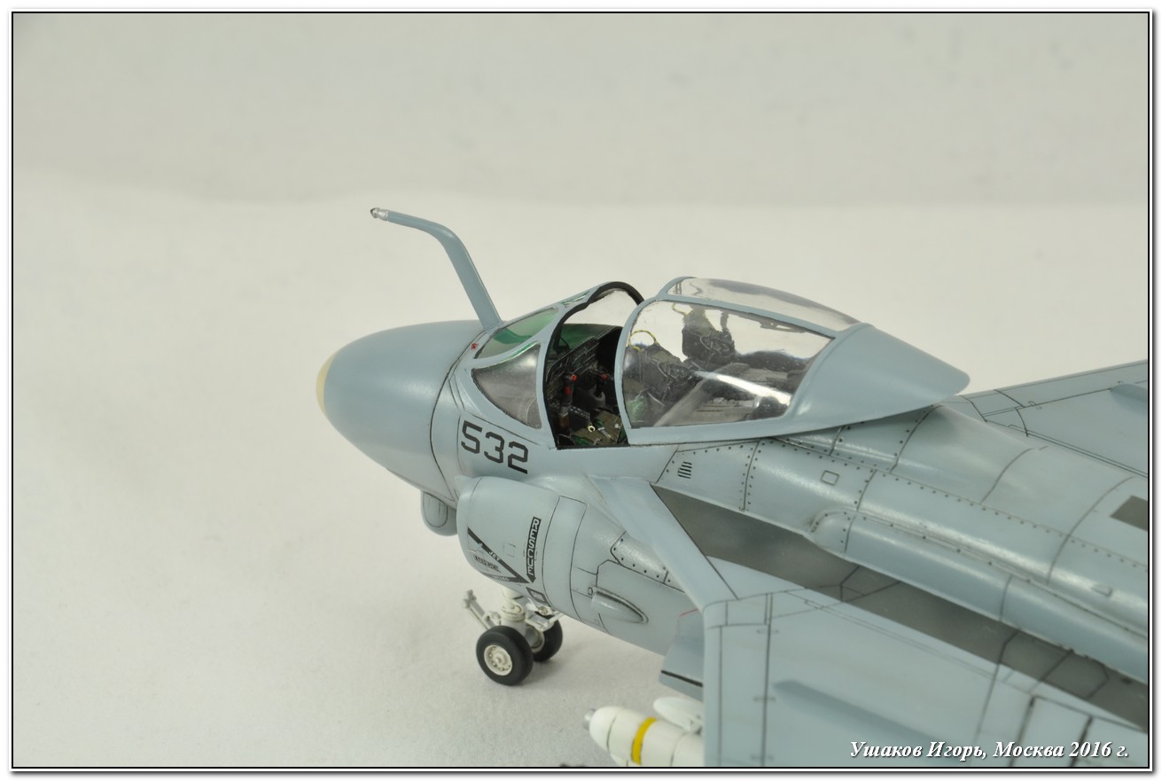 Уважаемые коллеги, представляю Вам свою очередную модель. Это американский многоцелевой палубный штурмовик GrummanA-6EIntruder (Нарушитель/Самозванец), выполненный в масштабе 1/72 фирмой Italeri.