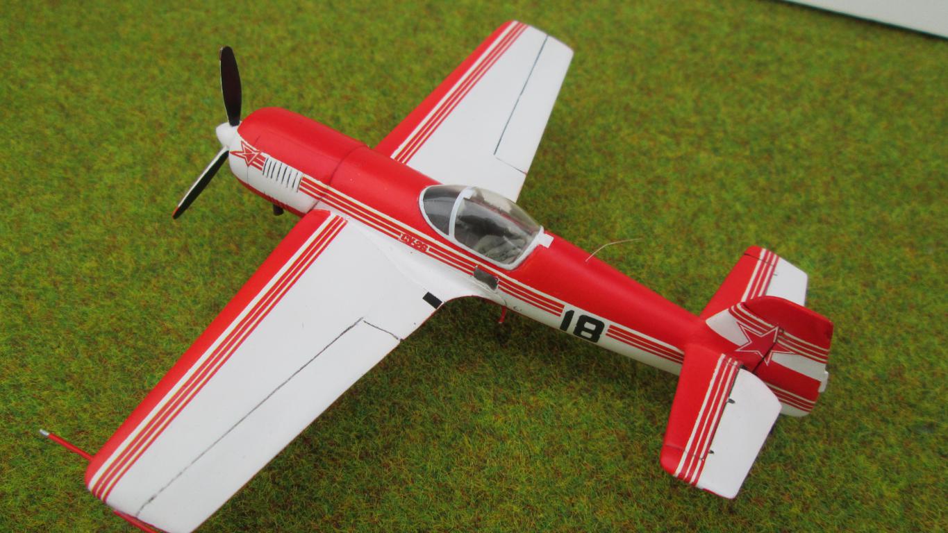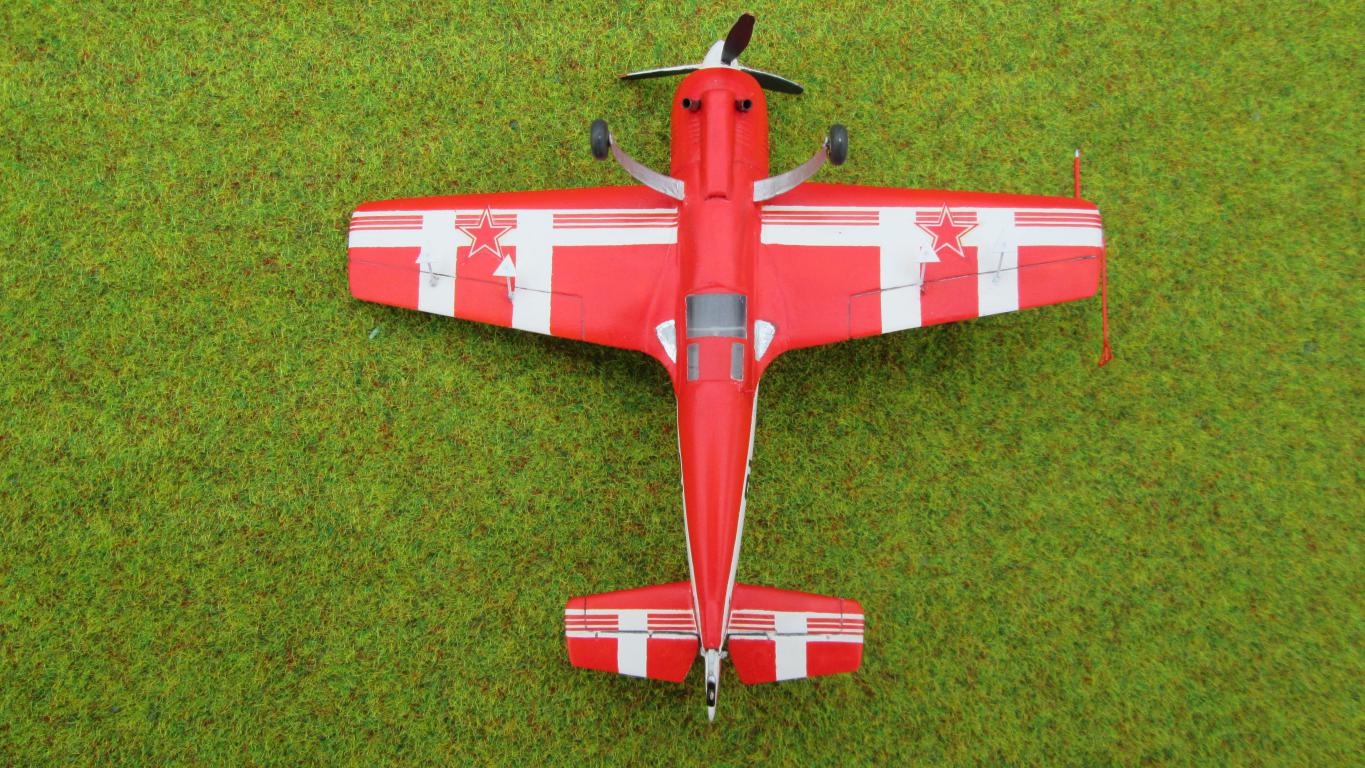 Самолёт ОКБ Сухого Су-26 создан для завоевания превосходства в воздухе на соревнованиях по воздушной акробатике различного уровня.Вобрав в себя высокую тяговооружённость,невероятный запас прочности по перегрузкам и простоту управления, является ярким представителем спортивно-пилотажных самолётов мира.Сама модель делалась порядка 15 лет назад,но недавно прошла перекраску.Делал её из пищевого листового полистирола по развёрткам из приложения к журналу "Юный Техник" уменьшенных на ксероксе с 33 до 72 масштаба.Рессоры шасси работающие,выполнены из пивной банки,фонарь-самодавленный,красил автоэмалями,сцеженными из аэрозольного баллончика,отдельное спасибо Георгию Сушкову за декаль. Вот вроде и всё.Приятного всем просмотра.