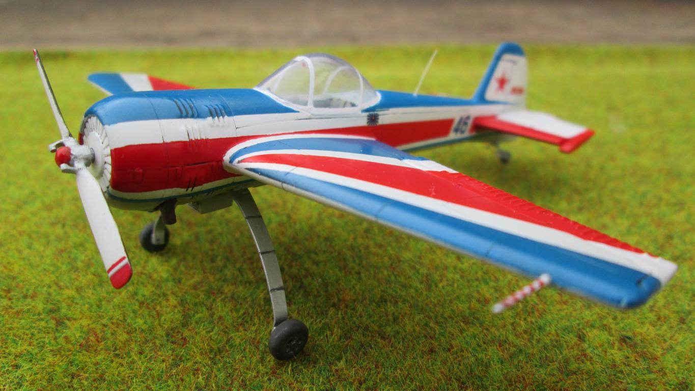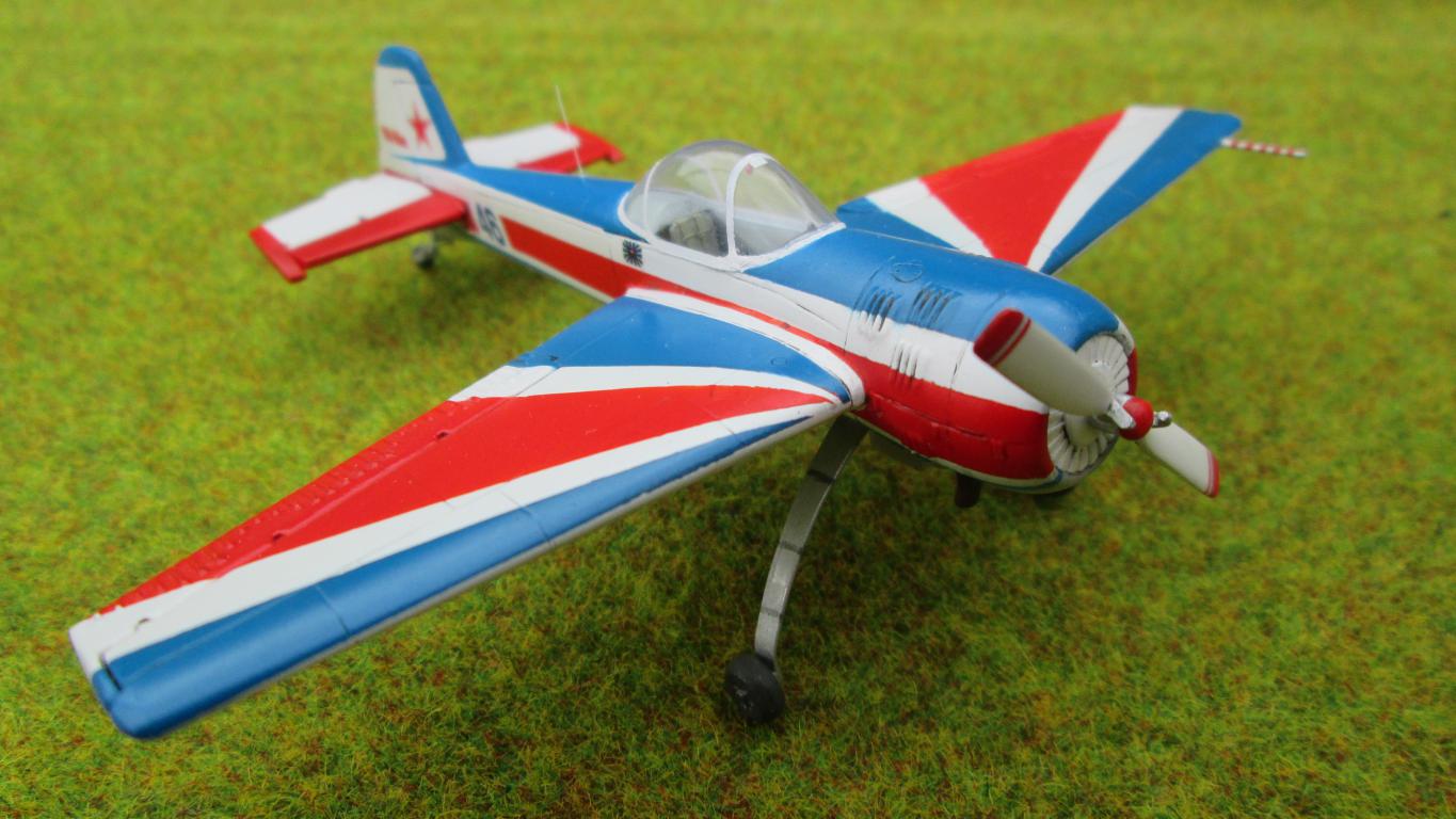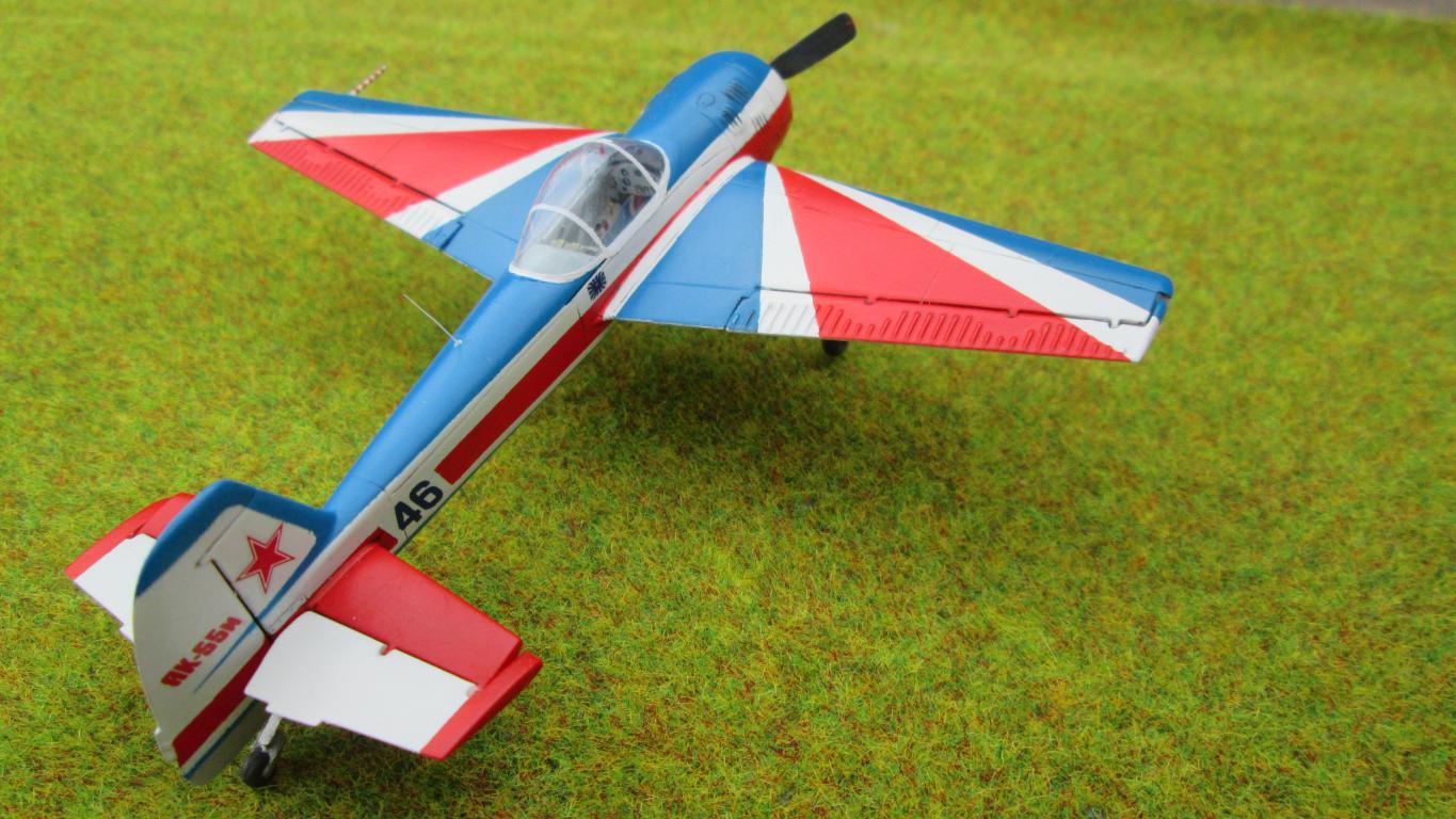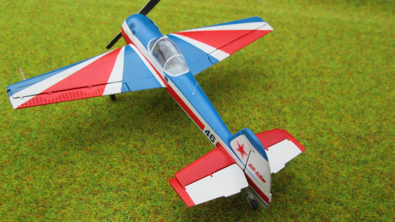 Самолёт Як-55М является дальнейшим продолжением Як-55,но с уменьшенной площадью крыла.Создан в ОКБ имени Яковлева,первый полёт совершил в 1989 году с 1991-93 выпущено 106 штук.Используется для подготовки спортсменов и выступления на соревнованиях по высшему пилотажу различного уровня.Сама модель проста в сборке,кое где использовал шпаклёвку.Вся мелочёвка ушла в ведро,ЛНД-есть ЛНД.Винт ,почему-то поменял сторону вращения и был заменён подобным и правильным из запасов,дополнил его новым обтекателем втулки и грузиками.Сделал рессоры шасси из алюминиевой полосы,также изготовил аэродинамические компенсаторы элеронов,пвд,швартовочные серьги,демпферные пружины хвостового колеса.Заменил фонарь на самодельный,нафаршировал кабину,сделал привязные ремни.Красил автоэмалями,сцеженными с баллончика.Отдельное СПАСИБО Георгию Сушкову за декаль.Всем приятного просмотра!