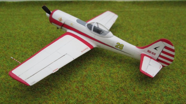 Тоже построил эту модель в том виде, в котором ее предложила АМодел, а уже потом выяснилось, что в таком виде Як-50 не существовал. А было два варианта: