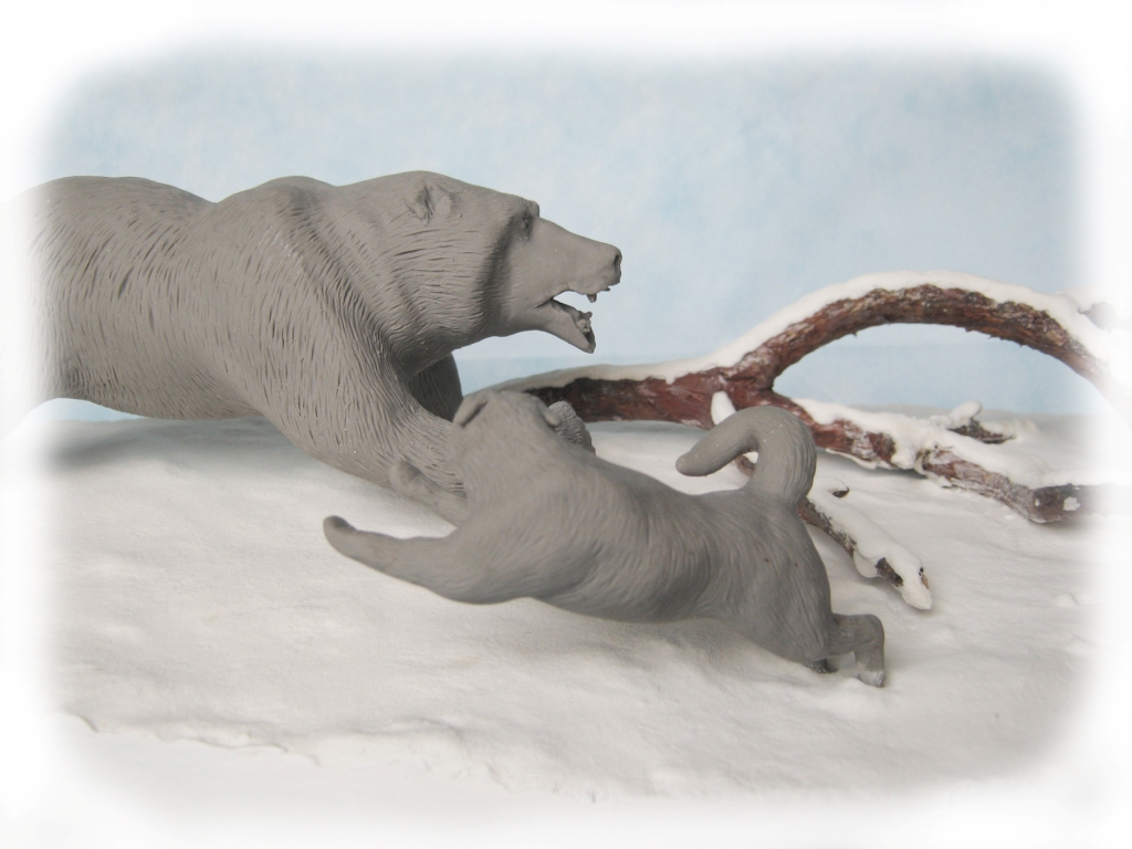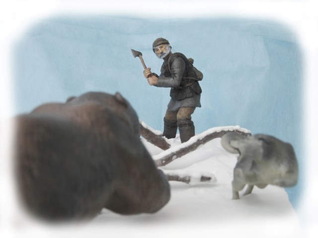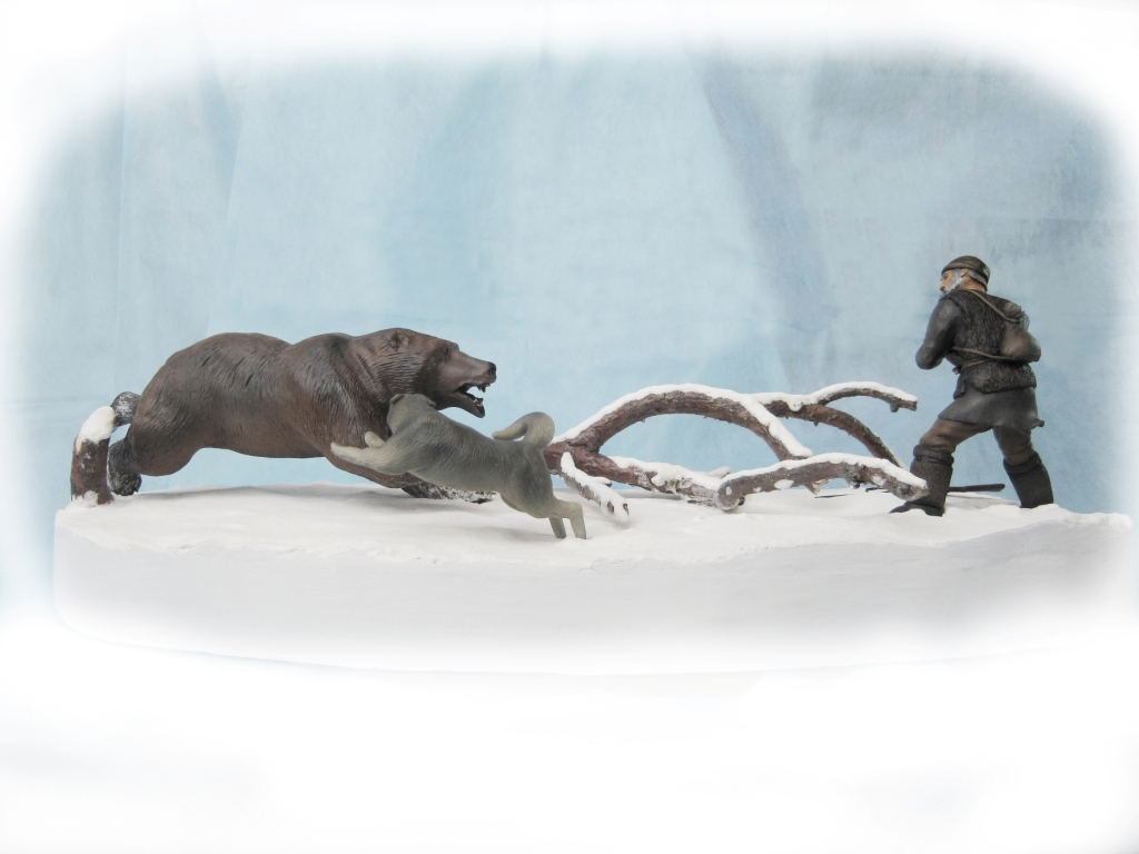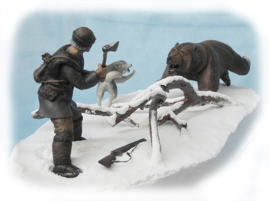 Хорошо и с душой сработали! Динамика передана шикарно. Мужичку, конечно, армагеддец. А вот, если он один выходил на медведя, то пса жаль, конечно...
