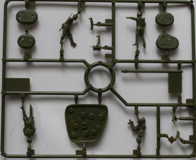 Набор содержит 4 фигурки - cтарший командир, младший командир и два связиста. Причем первые фигуры отлиты "одним куском", а связисты имеют приклеиваемые руки. Связисты заняты делом - один колдует над рацией с трубкой в руке, другой склонился с неплохо сделанной катушкой провода в руках.