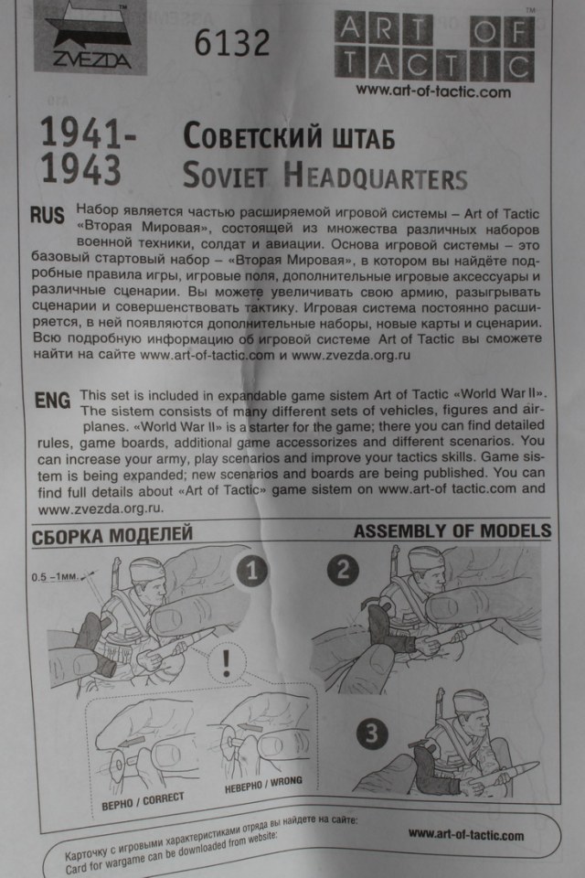 Итак, традиционная коробка с боковой загрузкой в которой (увы!) только один литник. И инструкция. Для тех, кто сумеет при сборке перепутать на фигурах левую и правую руки.