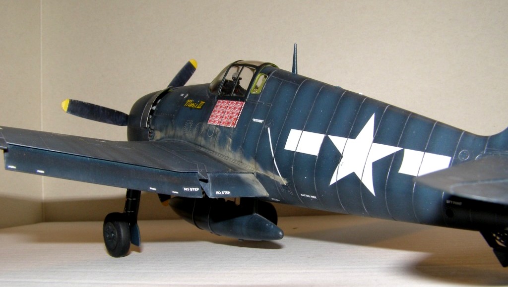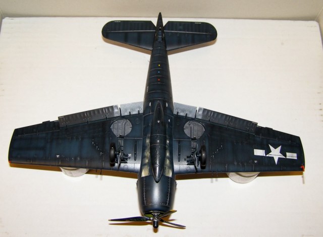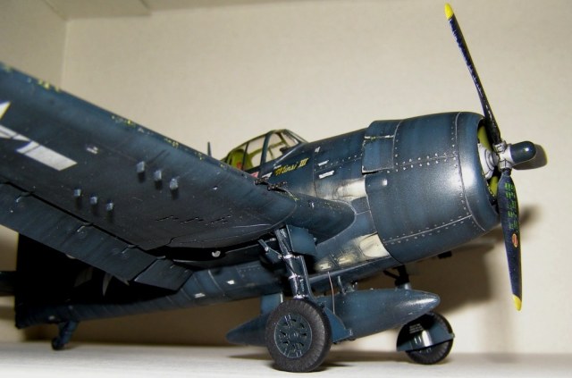 По нишам шасси - на поздних Хелкетах, Корсарах ниши красились в цвет низа, т.е. в Navy Blue.