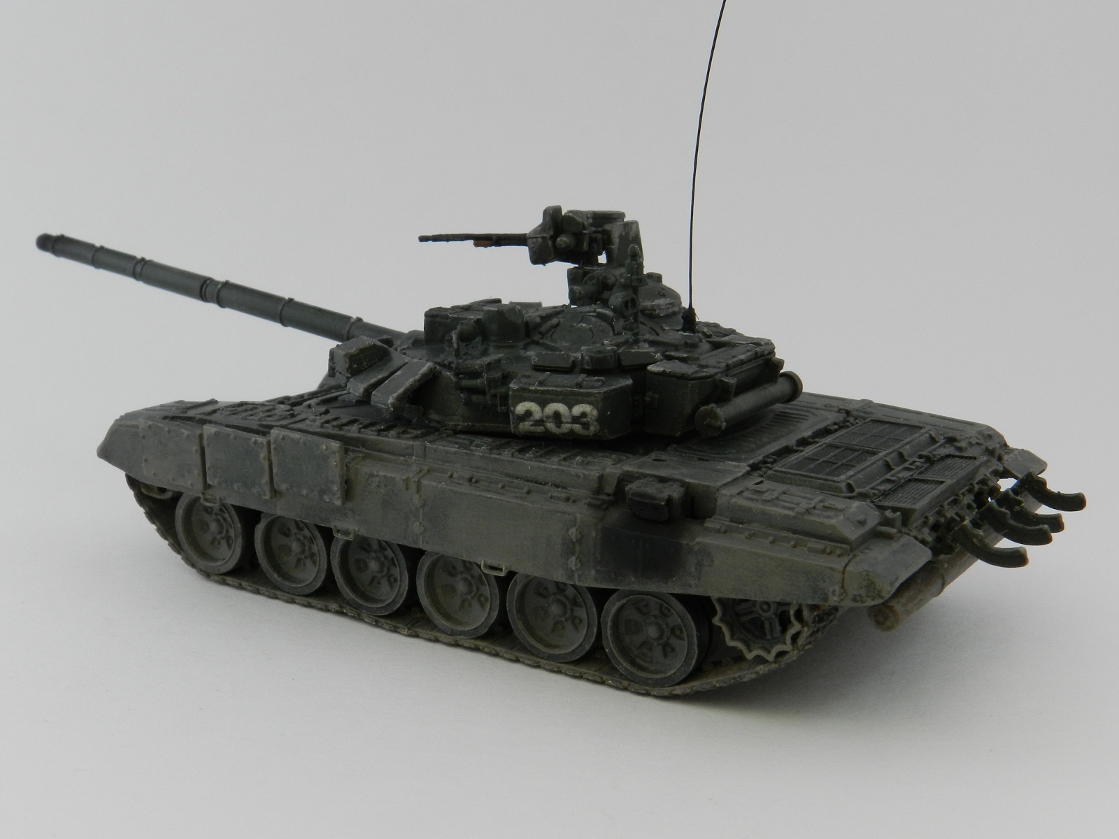 Конкретно из того что рассмотрел отсутствуют левая фара и ее ограждение на ВЛД, скоба на правом ЗИПе, крышки на выпуске воздуха за МТО ( правда их и в наборе нет, но сделать самому 5 минут). К тому же на Т-90(именно 90, а не 90С) стояла гусянка старого образца и другой двигатель по этому другой выхлопной коллектор, но это так чтобы вы знали.