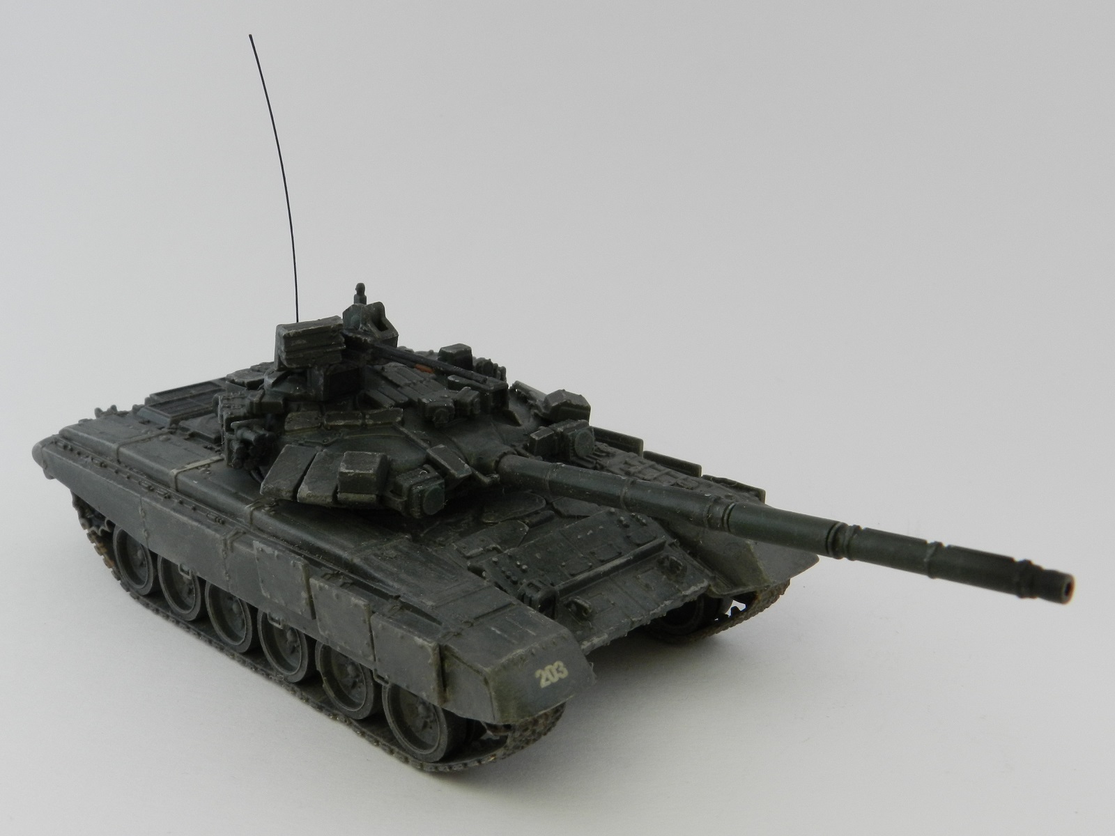Краски использовал водорастворимые Акан, мешал в пропорциях для соответствия с реальным цветом + чёрный мастер-акрил от Звезды, пигменты АК, Смывка и Фильтр от Уайлдер. Лаки - тамия X-22 и XF-86. Дырку рядом с глушителем, которую почему-то оставил производитель, заделал кусочком пластика, а прибор на башне сделал из CD-диска. Антенна - расплавленный пластик.