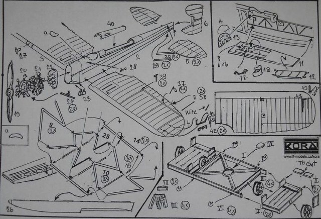Модель из смолы от фирмы Kora в масштабе 1/72 (номер по каталогу 72187) упакована в картонную коробку с верхним открытием. В наборе представлена санитарная версия данного самолёта. Качество литья весьма среднее, присутствуют дефекты и облой. Практически все мелкие детали требуется или доработать, или изготовить заново. Интересным «бонусом» в наборе является транспортировочная тележка. Декали даны на два варианта и смотрятся хорошо. Инструкция выглядит неаккуратной и довольно малопонятной.