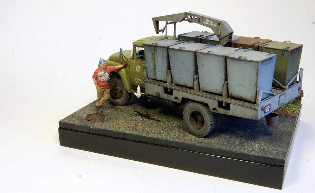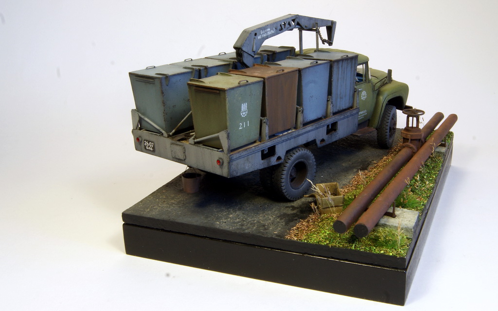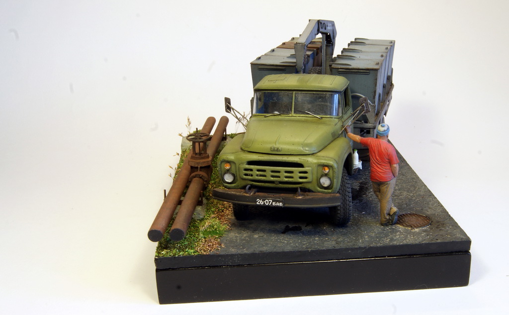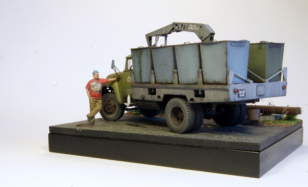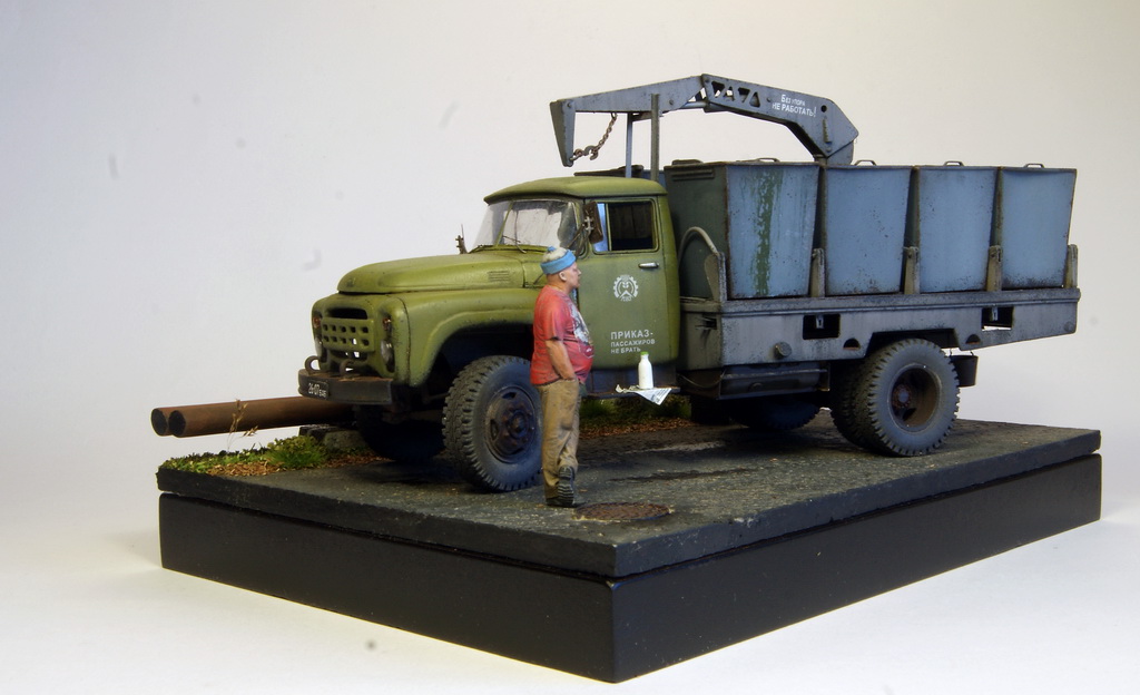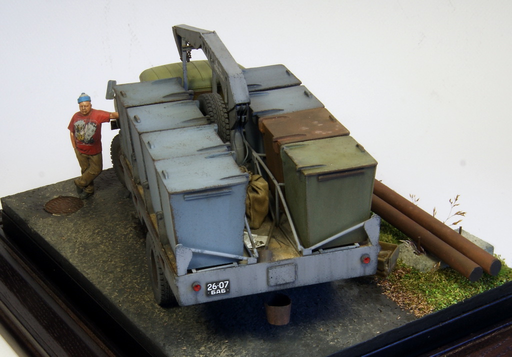 Отлично! Понравилось в частности, что баки разного цвета. Трубы здорово в тему подошли. Жалко фото мужика крупно нет. Как смог разглядеть - должно быть очень красиво. Единственное - цвет кабины не очень, для меня, понятен. Вроде и не хаки и гражданского такого не видел. Ну не факт, что такого не было.