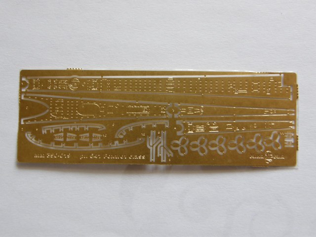 В коробке находится 2 литника с деталями лодки, плата травления с палубой из трех частей и другими мелкими деталями, подставка, лист инструкции и мелкий листик декали.