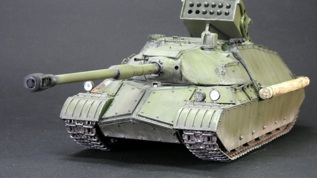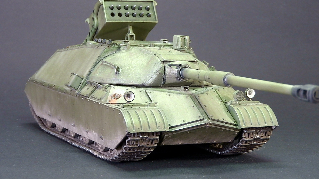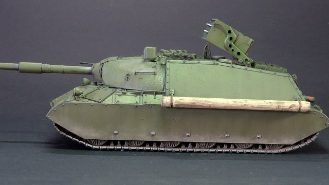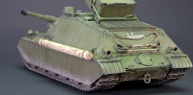 ...Прямо "Маус" советского образца.Но и этот агрегат можно было сделать лучше,зализав боковые листы брони,иначе эти стыки будут слабым местом самоходки.