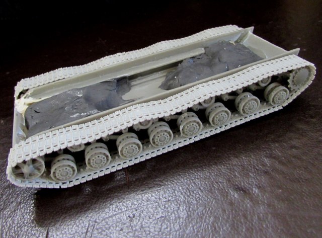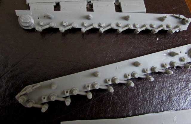 Гусеницы, традиционно для Зебрано, позаимствованы от ПСТ и являются самой противной частью модели. Ставить их - откровенное неуважение к модели. Знаю, что есть Григоровские (сам даже ставил их на Объект 212), но мне откровенно не хочется тратить неплохую сумму на и без того дорогую модель, поэтому я поставил наборные от Трумпетера (от ИС-3). Фэнтезятина, конечо - все же траки КВ и ИС неплохо так различались - но меня устроит и такой вариант.