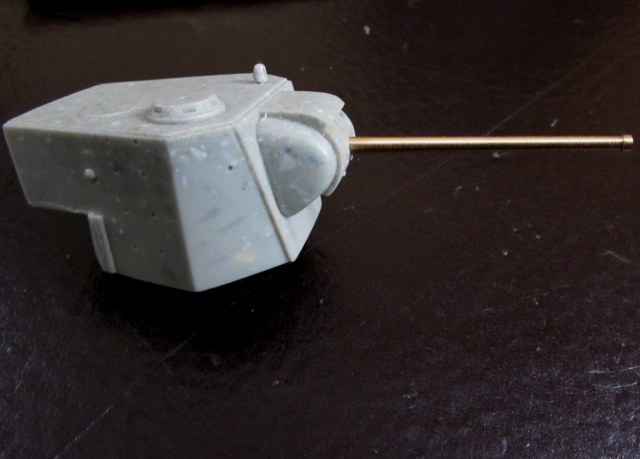 Ствол - тоже больная тема. Он металлический, но автор второго обзора, вкладывавший модель в чертежи, обнаружил, что ствол пушки на 1 см короче, чем нужно. И действительно, с родным стволом модель выглядит как-то странно - для такого "скворечника" пушка должна быть явно длиннее. Подумав немного, я решил поставить ствол от Д-10С от Абер - он нужной длины, а утолщение у основания ствола еще увидеть надо.