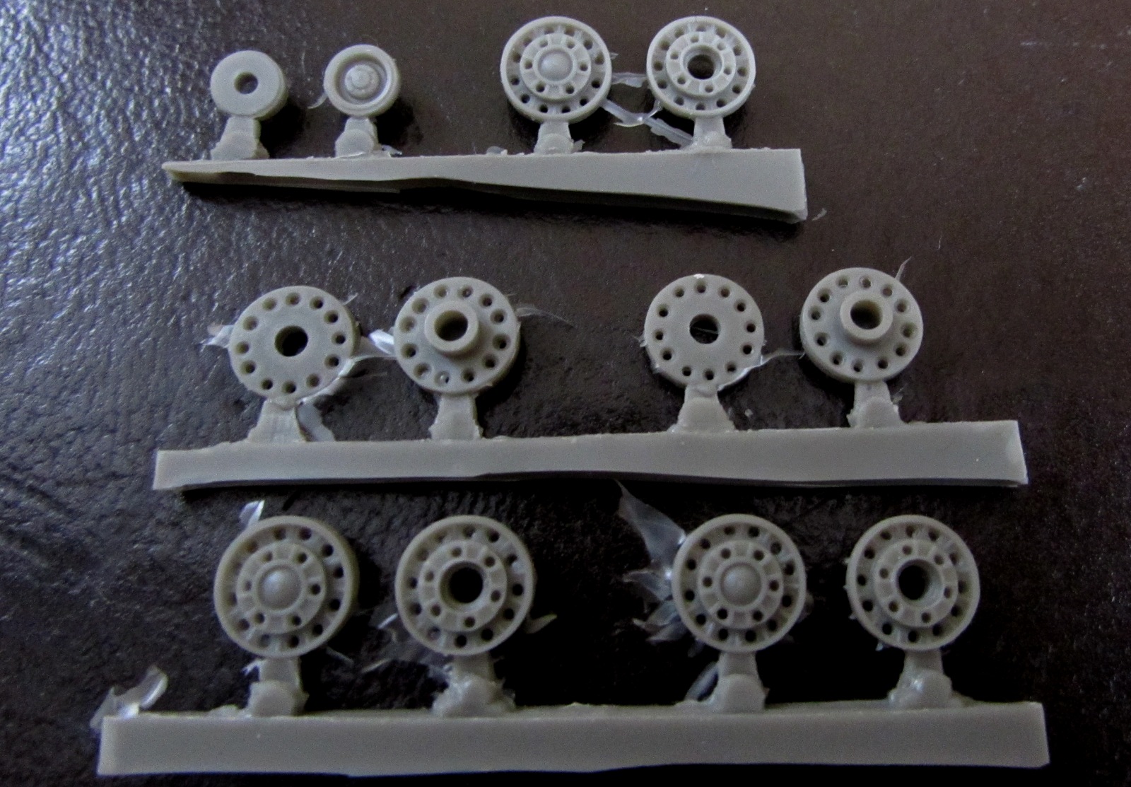 Катки даны выпуска лета-осени 41-го (если не ошибаюсь), упрочненные. В отличие от грубятины ПСТ, эти катки проработаны и с внутренней стороны, и имеют полную перфорацию. Любители матчасти с форума Acemodel категорично признали их "неканоном", но как по мне, сойдут и эти.