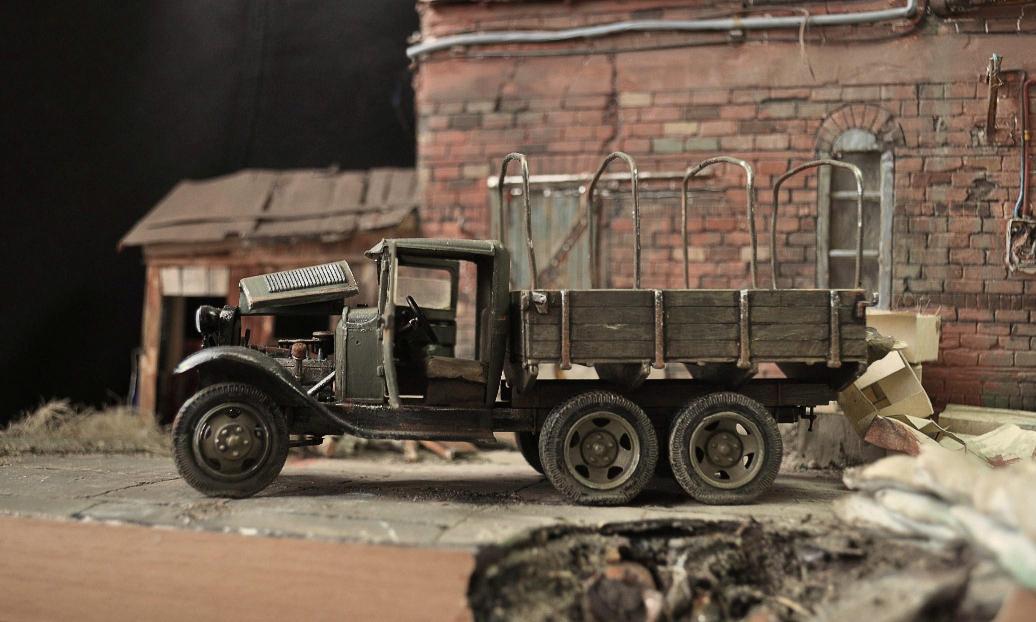 Вы просите подсказать с идеей, что подобрать. Каждый, наверное, мог бы в этом поучаствовать, хотя нужно отметить следующее: диорама начинается с идеи. С главного, а не второстепенного. В этом трудность. Да, конечно, можно поставить водителя, копающегося в машине (благо таких хватает). Может быть, проходящих, изнуренных боем бойцов (наших или немецких). Может мирных жителей, смотрящих на автомобиль. Однако, самая изюминка в диораме - это идея, душа (извините за пафосность). Можно долго обсуждать была ли у погибшего бойца такая форма, или могла ли быть такая поза, или сколько крови: в жизни тело могло быть за машиной. Однако для картины, как художественного произведения это не эффектно и не трогает. Ваша работа "крупная рыба" как раз удачно выражает то, что я хотел сказать. А в этой работе, мне кажется, нужно что-то, что будет вызывать грусть, сожаление, скорбь, осматривая разрушенный завод. Может, старик с палочкой? В любом случае буду рад, если смогу помочь