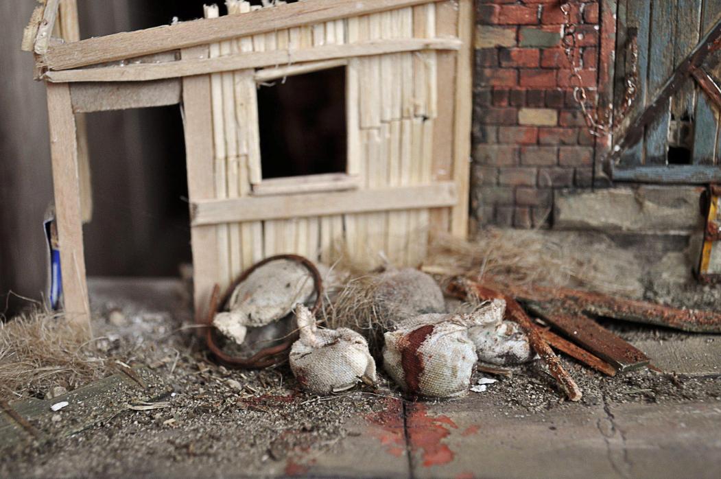 Скорей всего будет другой набор фигур, тут нужно посидеть обмозговать, что да как лучше будет)Полностью убирать людей не хотелось бы, да и перетекать в мирную жизнь тоже. Думаю что доработаю момент прошедшего боя, добавлю следы перестрелки, возможно ещё что-то