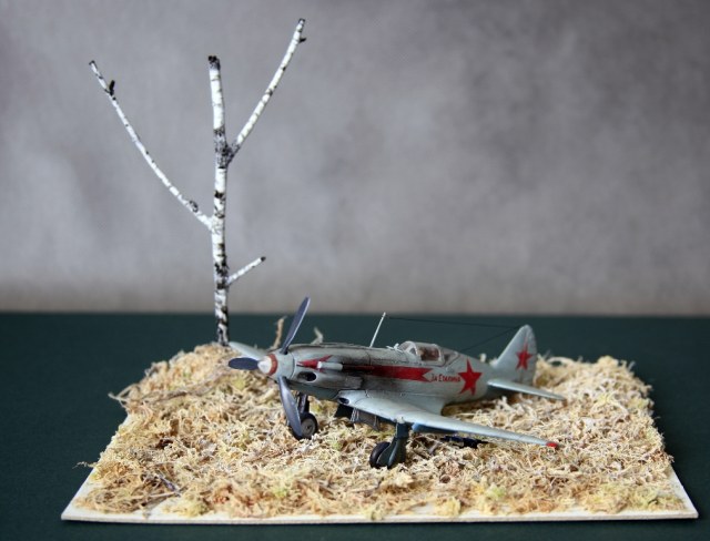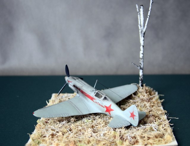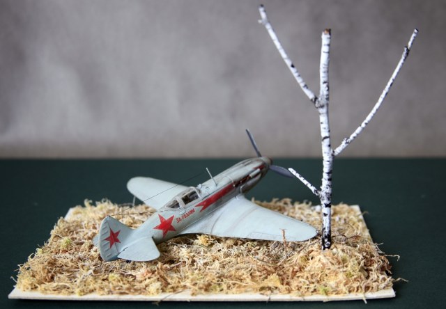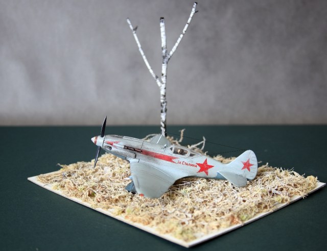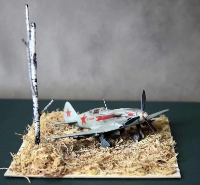 Это вторая по счету собранная мной модель. Собрал почти сразу после первой, так что ошибки в основном все те же самые. Из доработок только пилот, оставшийся после сборки ICMовского Мустанга - их там было два. Ну, и антенна. Покраска кистью, акрил АКАН, который дал трещинки после нанесения аэрозольного глянцевого лака Тамия. Следы от выстрелов и выхлопных газов - сухой художественный соус. Сверху всего матовый лак Тамии. Для постройки поляны использовал природные материалы. Береза из веток какого то дерева и болотный мох. Зимний камуфляж постарался скопировать с фото на коробке. В общем то по стыковке деталей пока, по - моему, самая слабая модель после ICM, Звезды и EDUARDа, впоследствии собранных моделей, до которых скоро дойдет очередь к размещению здесь. За ранее всем благодарен! Учусь - учите!