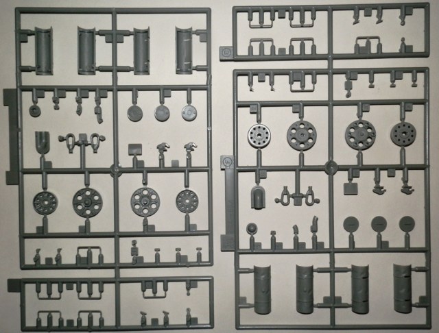 Набор весьма богат, включает в себя девять литников с деталями танка, пакетик магик траков и шпор, две платы травления, точеный ствол, литничек с остеклением фары, витой тросик и декаль. Литье обычного для Дрегона качества, облоя и утяжин практически нет, толкатели на внутренних поверхностях. Стыковка( по аналогии с набором Т-34/84м собранным раннее) не идеальная но на достойном уровне. В наборе присутствуют два вида комбашенок, два вида грязевых щитков, две разновидности ведущего, баки как "мятые" так и ровные.