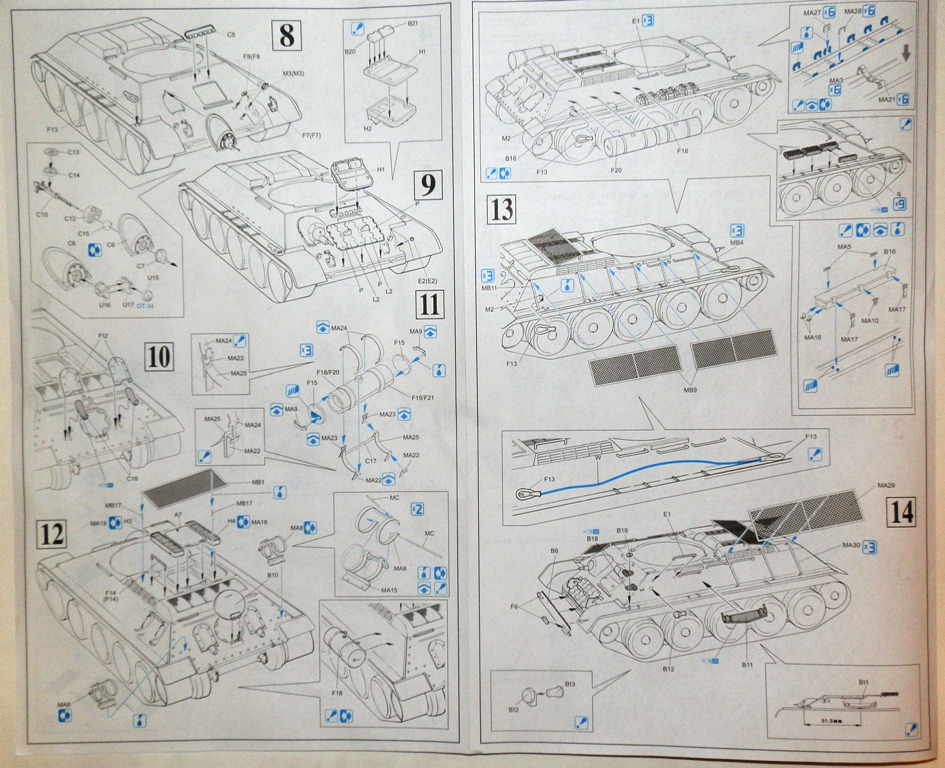 Не понравилось что крышка МТО дана с пластиковой сеткой, а не как в более новых наборах двух видов. Придется или вырезать сетку, или менять крышку. Я при сборке Т-34/85М менял на ЗИП, подошло почти идеально. Кроме того при установке округлых передних грязевых щитков, коробчатые необходимо также срезать, они отлиты с корпусом.