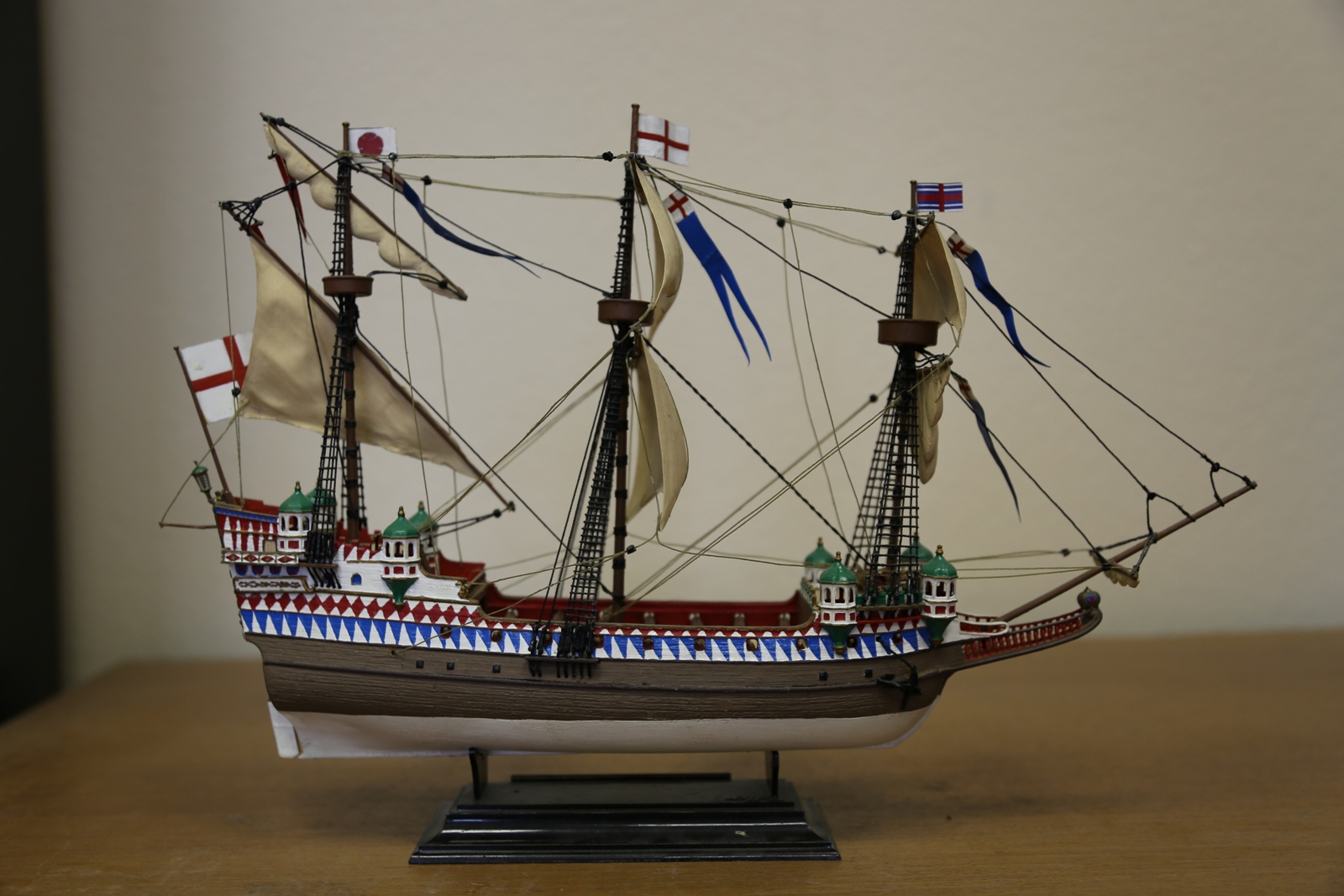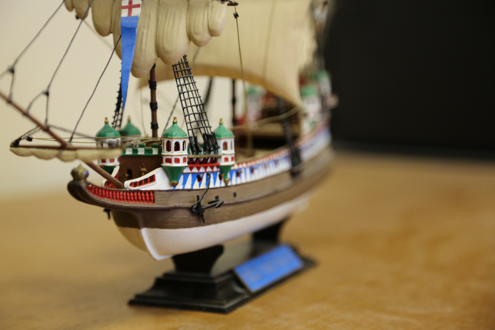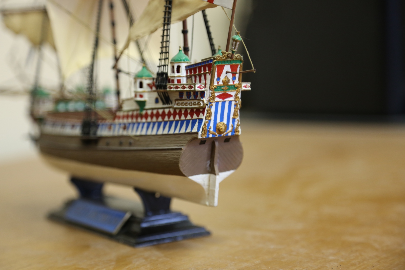 Классный корабль получился! Нарядный, чистый, может даже слишком чистый! Приятно смотреть! Бросился в глаза потому как у самого такой есть. Ни у кого еще не видел. Позже выставлю как ни будь. Собран лет 10 назад. Забыл уж про него! Реставрировать пора наверное. Удачи!
