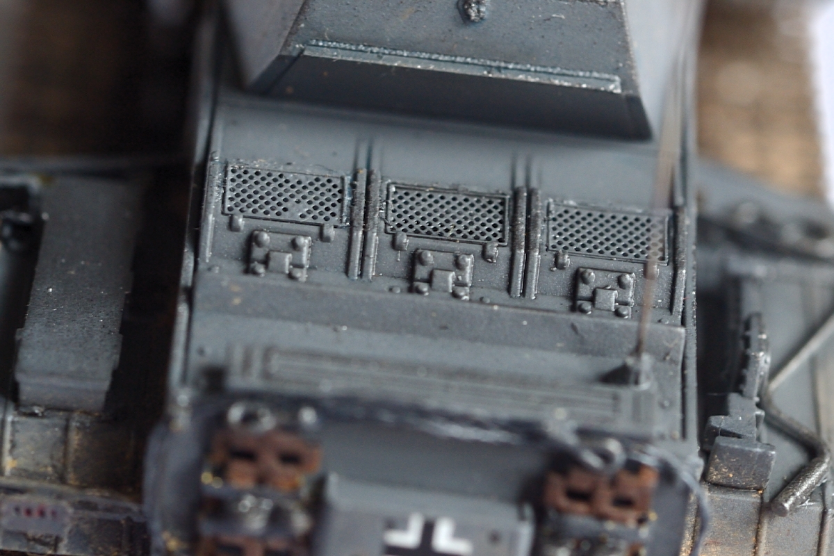 Набор, конечно, богатый. И модель,в целом, удалась, на мой взгляд. Есть, правда, некоторые вопросы: фары склонили головы, в одну сторону. Одна решетка залита. Очень чистый моторный отсек, что диссонирует с заявленным внешним видом модели. В стволе "орудия главного калибра" паутина...