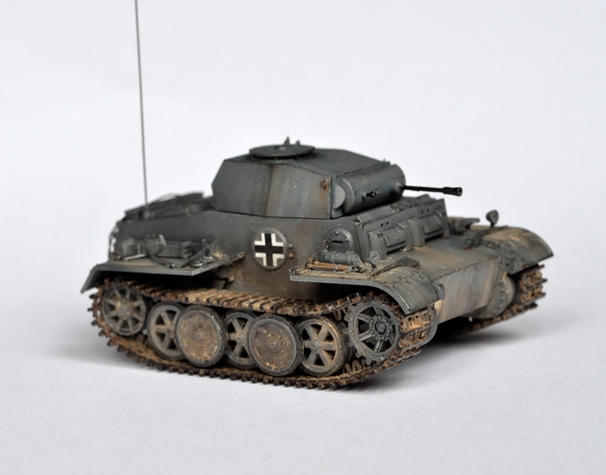 Модель полностью собрана из коробки, из дополнений только антенна из струны. Окраска акрилом Тамия с прешейдингом, фильтр Миг, немного тонировки маслом. Обгадинг пигментами Миг.