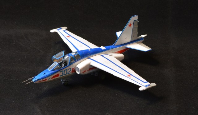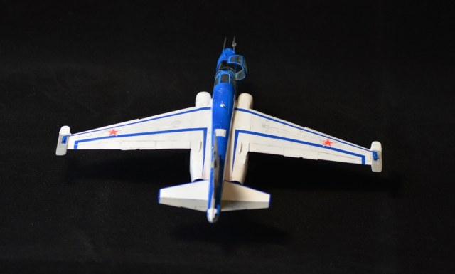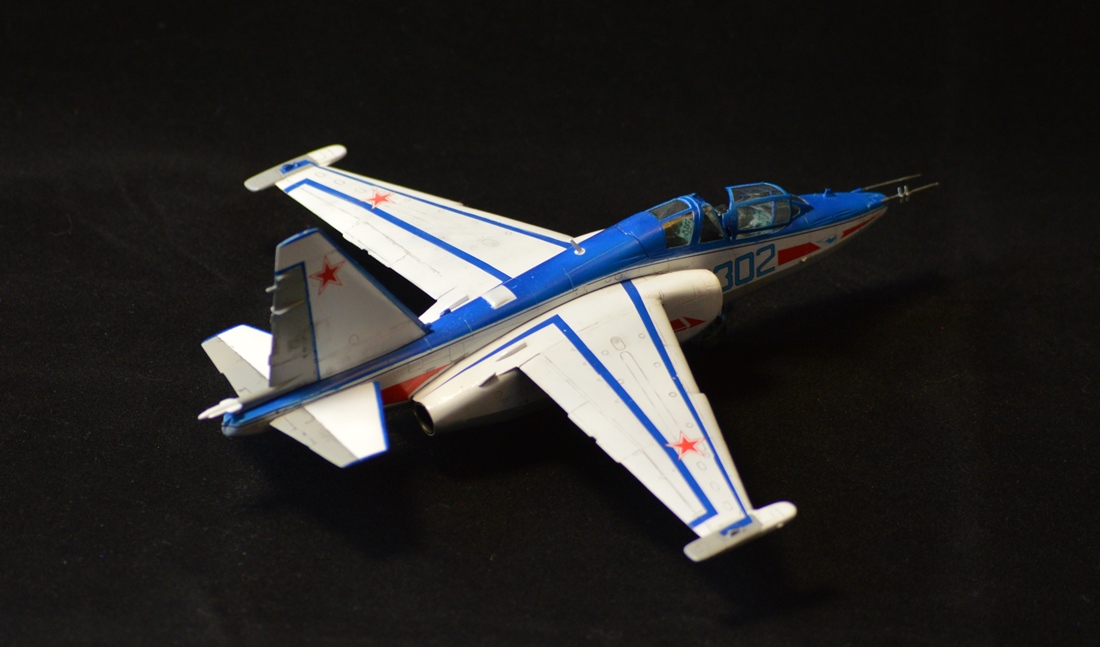 трудно оценить работу , потому что сам такой не собирал . набор видел . из минусов ванна кабины с креслом воедино отлита - не гуд , сопла из смолы . фюзель кривой . там надо потрудиться . окрас интересный . пвд стоило заменить . а в целом - нормально так получилось . но фото мало и не рассмотреть ничего толком .