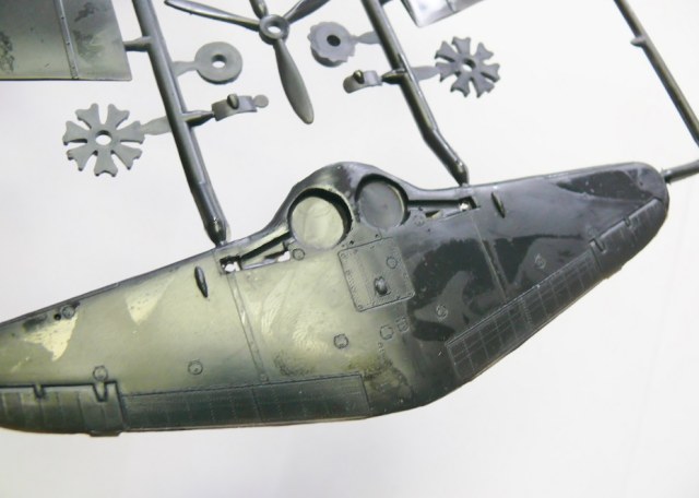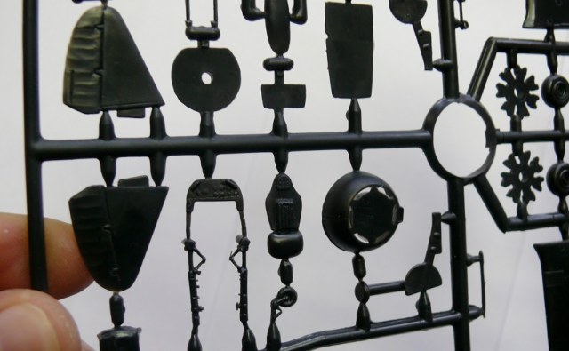 Кстати, такой момент. Литье было запечатано в полиэтиленовый пакет, который облегал очень плотно детали. Это напоминало вакуумную упаковку колбасной нарезки. Когда пакет вскрыл, обнаружил, что литники густо покрыты некоей неприятной жирной смазкой. Отмыл с помощью «Фейри». Соображениями на счет этой смазки поделюсь в следующем обзоре менее удачной модели.