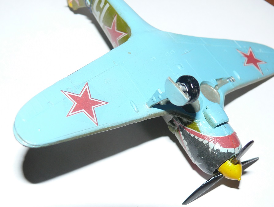 А на счет декали даже заморачиваться не буду. Слава Богу с декалями на советские самолеты нынче проблем нет, есть и куча различных "дарственных" надписей. А Костылевская "Лыба с зубами" мне никогда не нравилась. "Лавка", как и любой другой самолет с движком воздушного охлаждения не подходит для рисования пастей. Такова уж специфика геометрии носовой части. Получаются не акулы, а какие то уродливые упыри и вурдалаки. :-)))