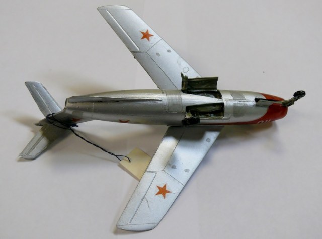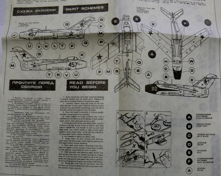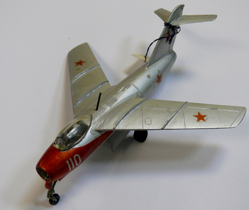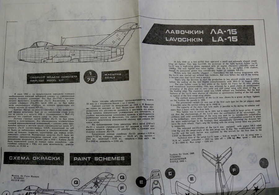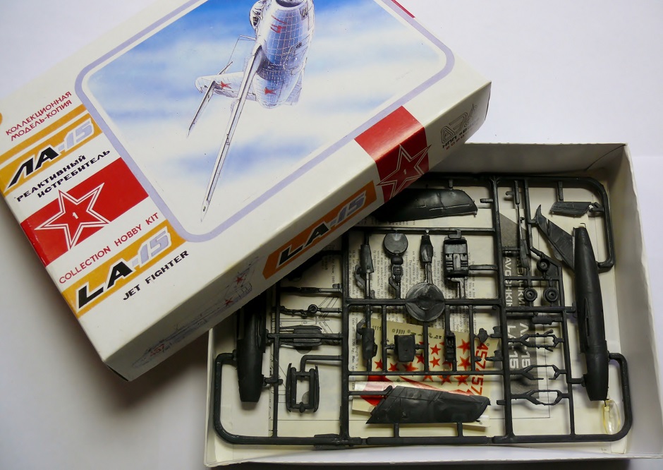 На фото Ла-15 собранный мною в те далекие времена. На нем нанесенный кистью толстенный слой ГДРовской серебрянки. Собрано погано, шибко реставрировать не буду. Испорченный набор частично пойдет на донорские детали.