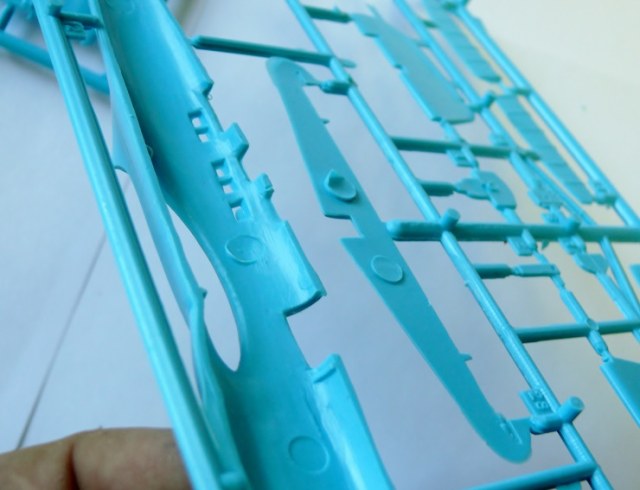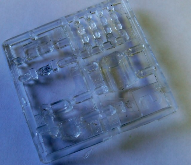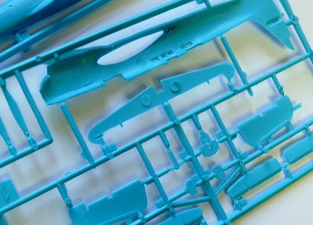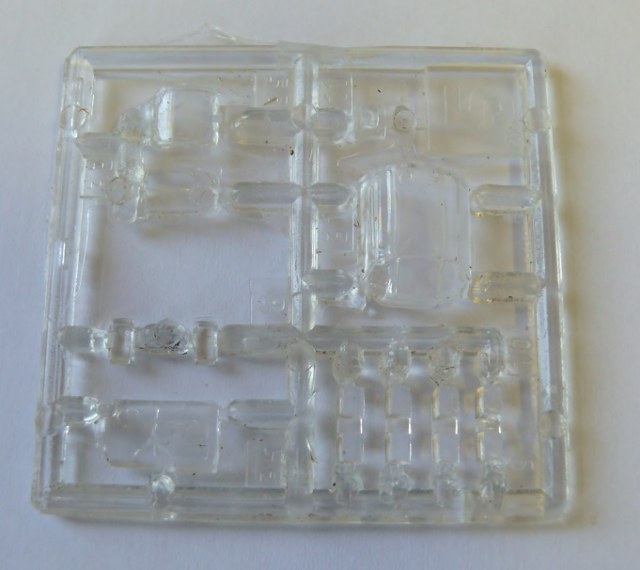 Пластик очень мягкий, ЛНДшный. По опыту сборки помню – сильно разъедается обычным модельным клеем. Детали схватываются намертво. Прозрачные детали – не прозрачные. С посторонними включениями некоей сажи или мусора. Если по уму, то детали остекления можно использовать лишь как пуансоны для вытягивания из пленки.