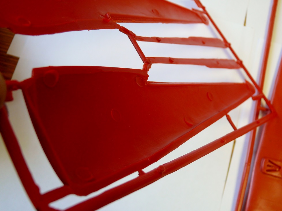 Все поверхности нужно обрабатывать шкуркой, много следов от дефектов прессформ. Видимо модель отливалась под оооочень низким давлением - толкателей на внутренних поверхностях чрезвычайно много! Этакие массивные пеньки которые нужно фрезеровать, вручную удалять чертовски муторно. По задумке производителя, все рулевые поверхности должны быть подвижными. Этого действительно можно добиться путем долгих манипуляций с местами навески-посадки. Надо делать шарниры – петли из жести. Если же просто подвесить очень длинные элероны на штырьки, как рекомендует инструкция, они изогнутся под собственным весом и нормально «рулить» не будут. Модель не просто массивная, но реально – тяжелая! Штатные стойки шасси обязательно «поплывут». Надо их паять из проволоки, благо формы там не сложные.