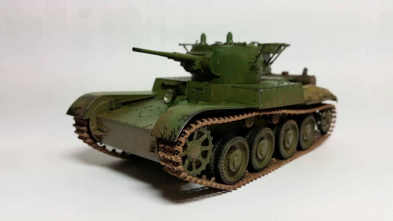 Давным давно начал собирать этот танк и забросил...... Шли годы он стоял и пылится в нижнем заднем ящике пока я не начал делать ремонт и не увидел его. И вот решил доделать. Представляю на ваш суд Т-46-2. В модели использовал пластик тамия, запчасти от бт, стволы моделипойнт, гуси фриул, клепки смоляные, краска тамия, мр хобби , пигменты миг валеДжо ак. И огромное спасибо Игорю Кулешову за идейную и творческую помощь.