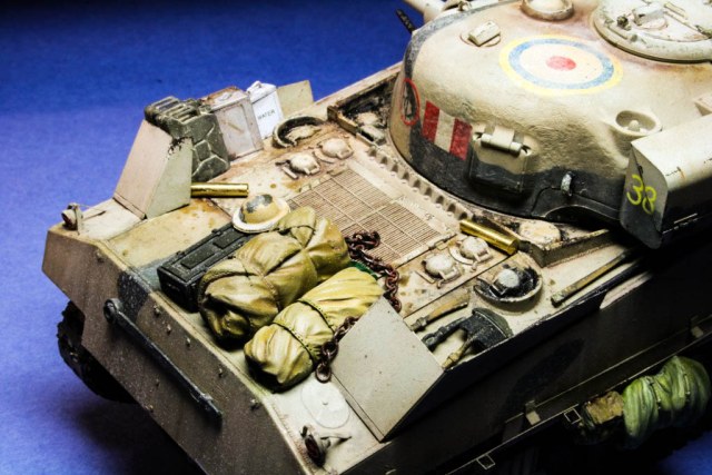 Британский Шерман на Сицилию, собирался хорошо, укомплектован стволом от РБ моделс, барахлом от Бронко, правда траки виниловые оставил.