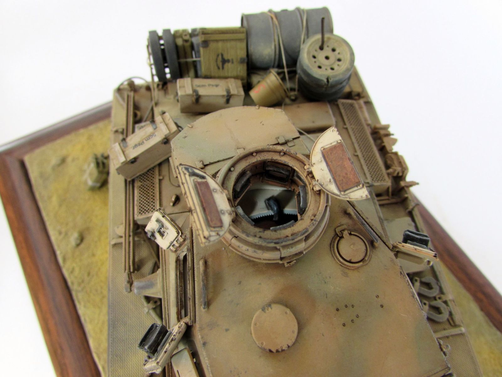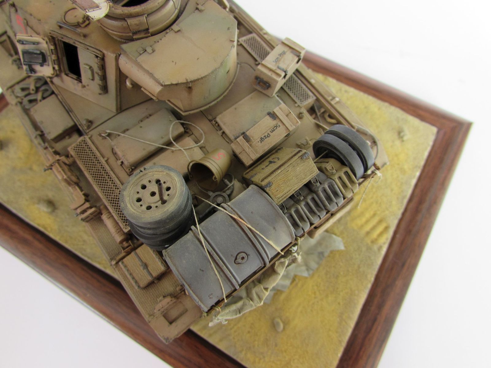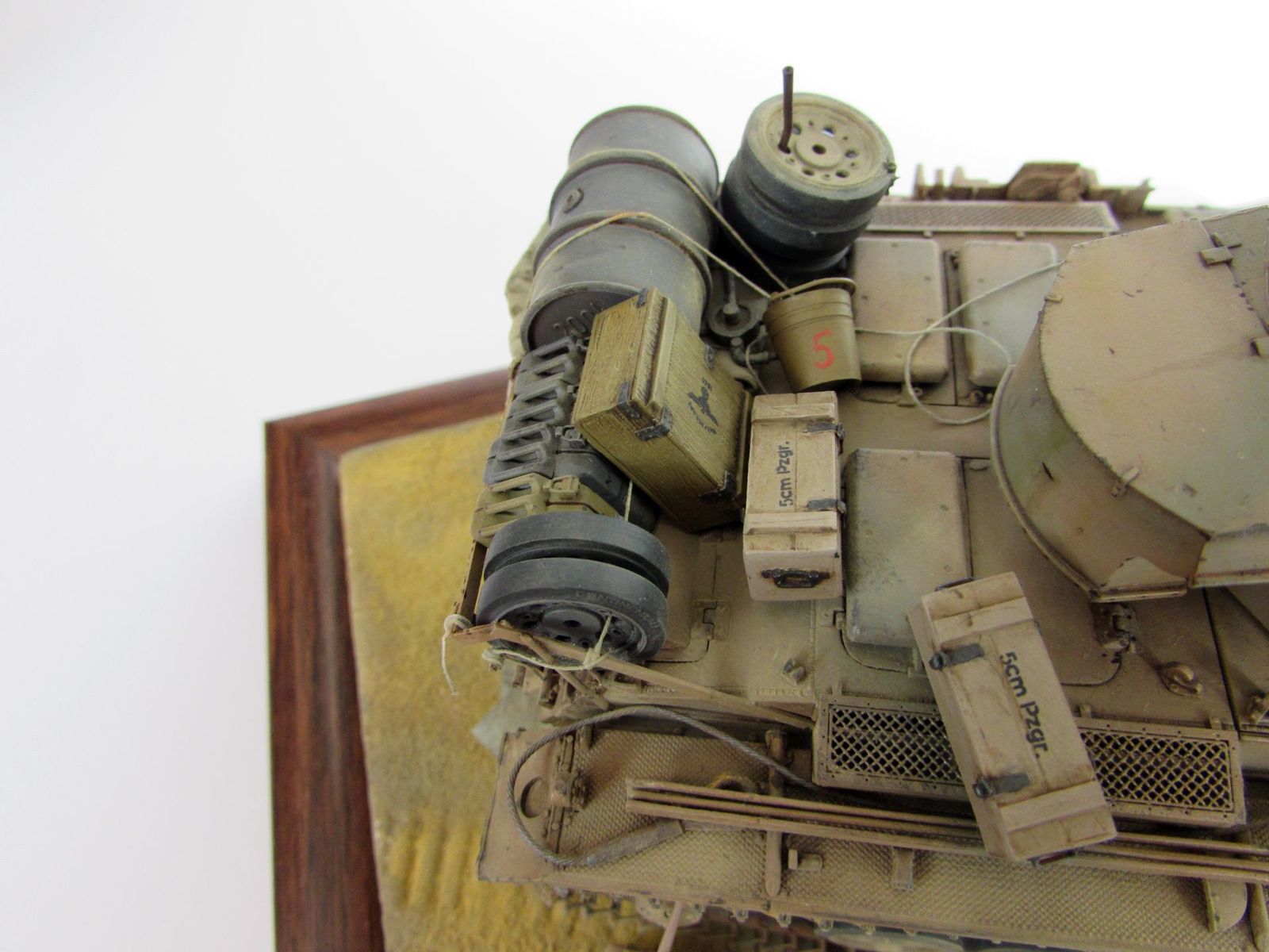 Танк нагружен бочкой и канистрами от Tаmiya. Ящики частично самодельные, частично от MiniArt. Лопата и ведро от DAN.