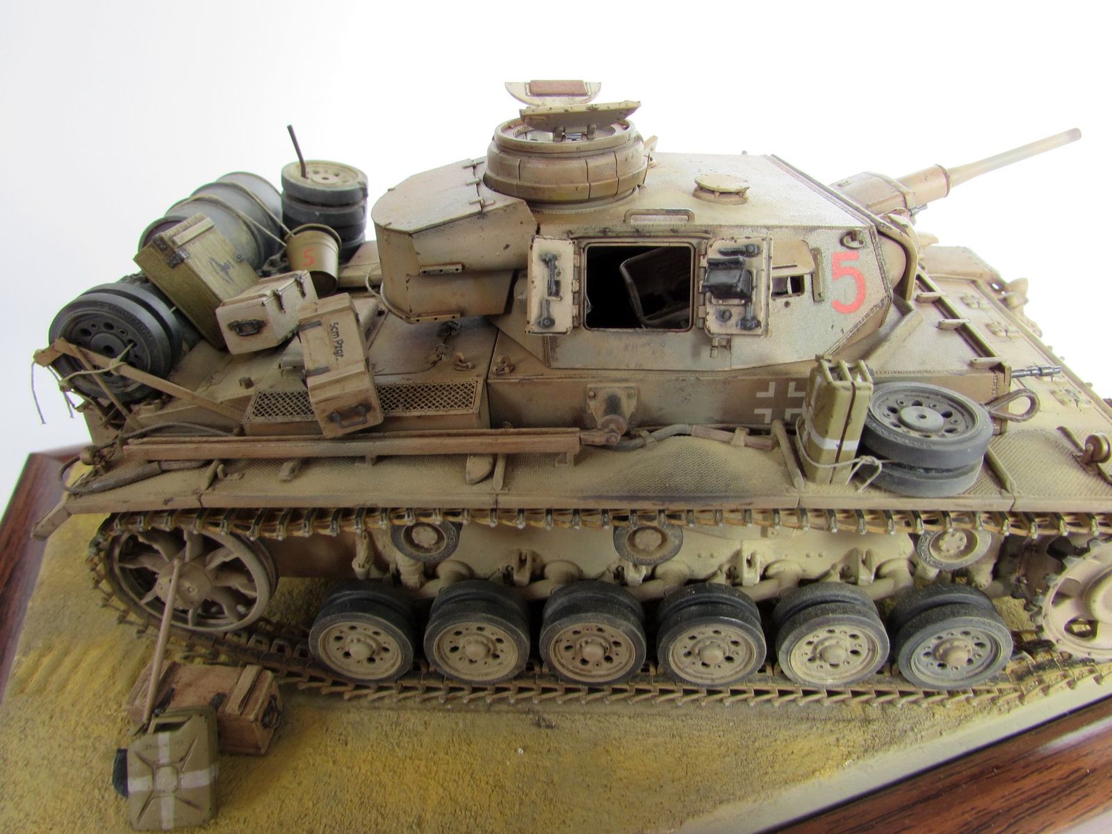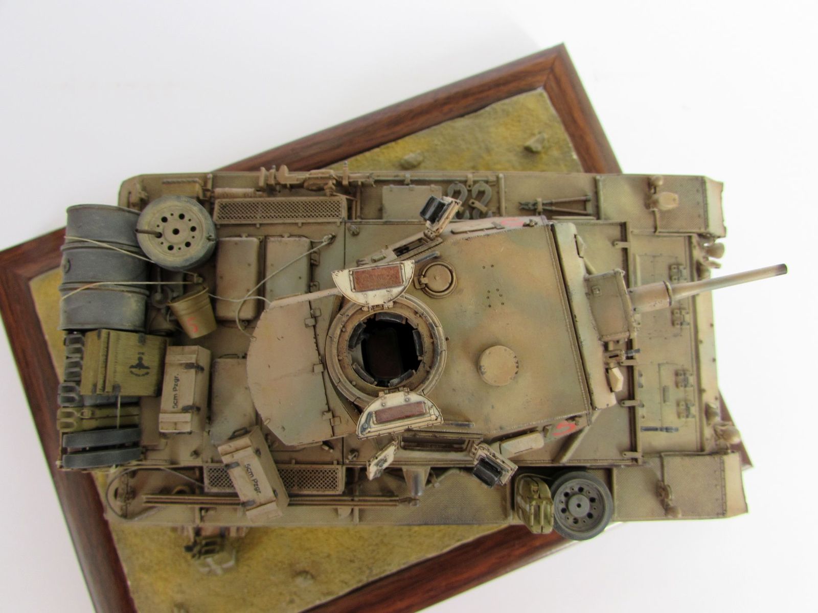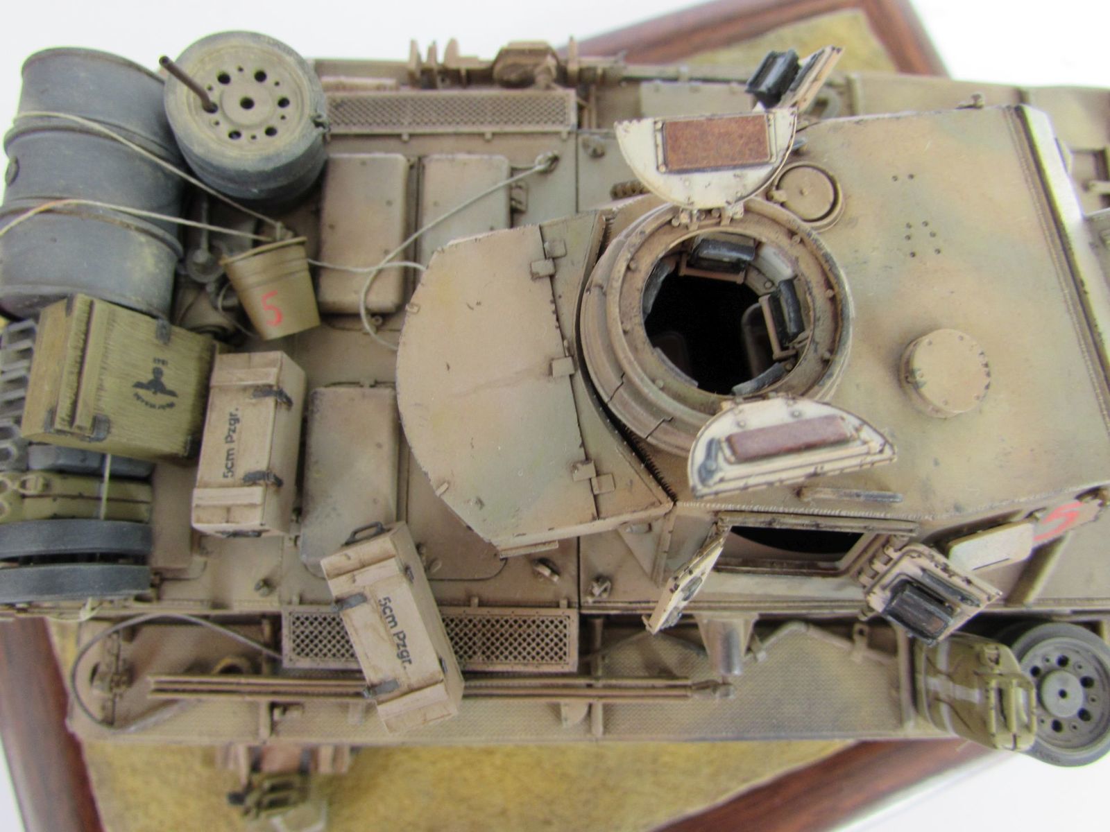 Танк нагружен бочкой и канистрами от Tаmiya. Ящики частично самодельные, частично от MiniArt. Лопата и ведро от DAN.