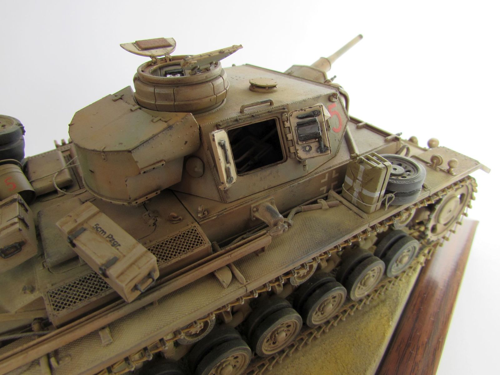 Внесены незначительные доработки: заменена проводка фар, сделана кормовая корзина для скарба и крепление для дополнительных траков на переднем броневом листе, крепление для топора с правой надгусеничной полки заменено на крепление для дополнительного катка.